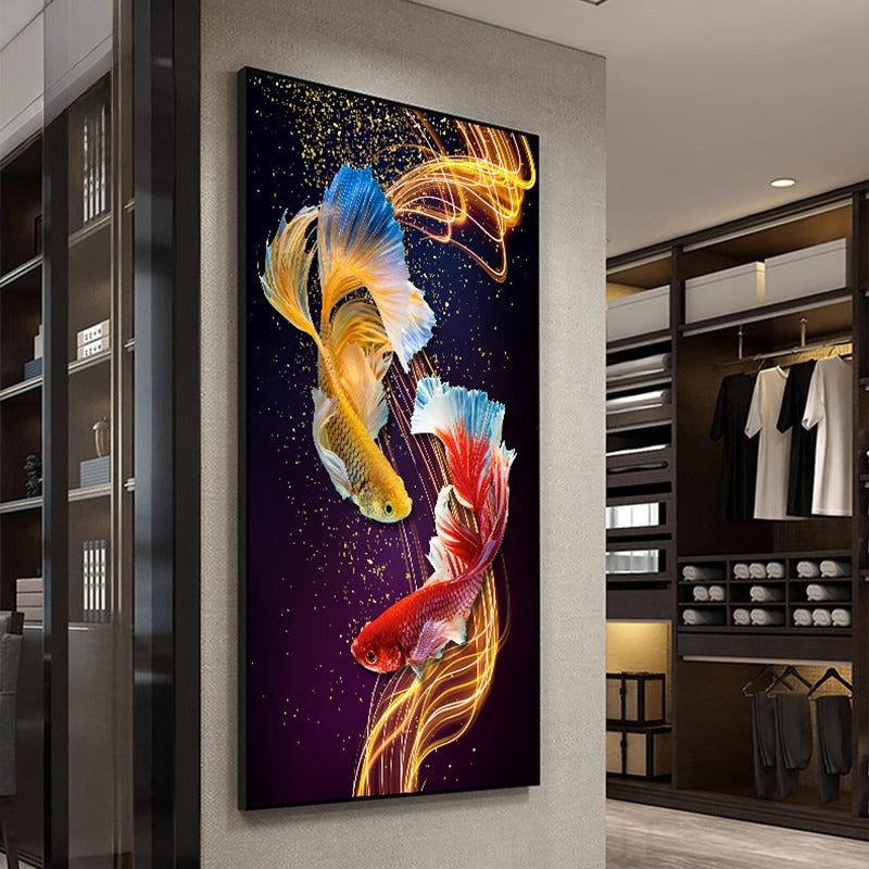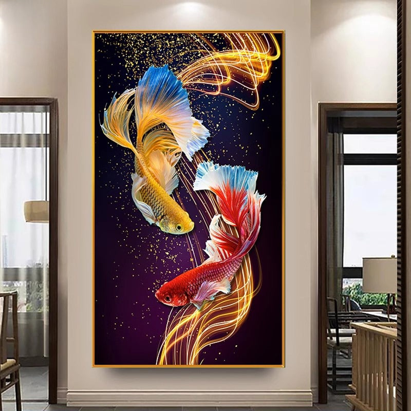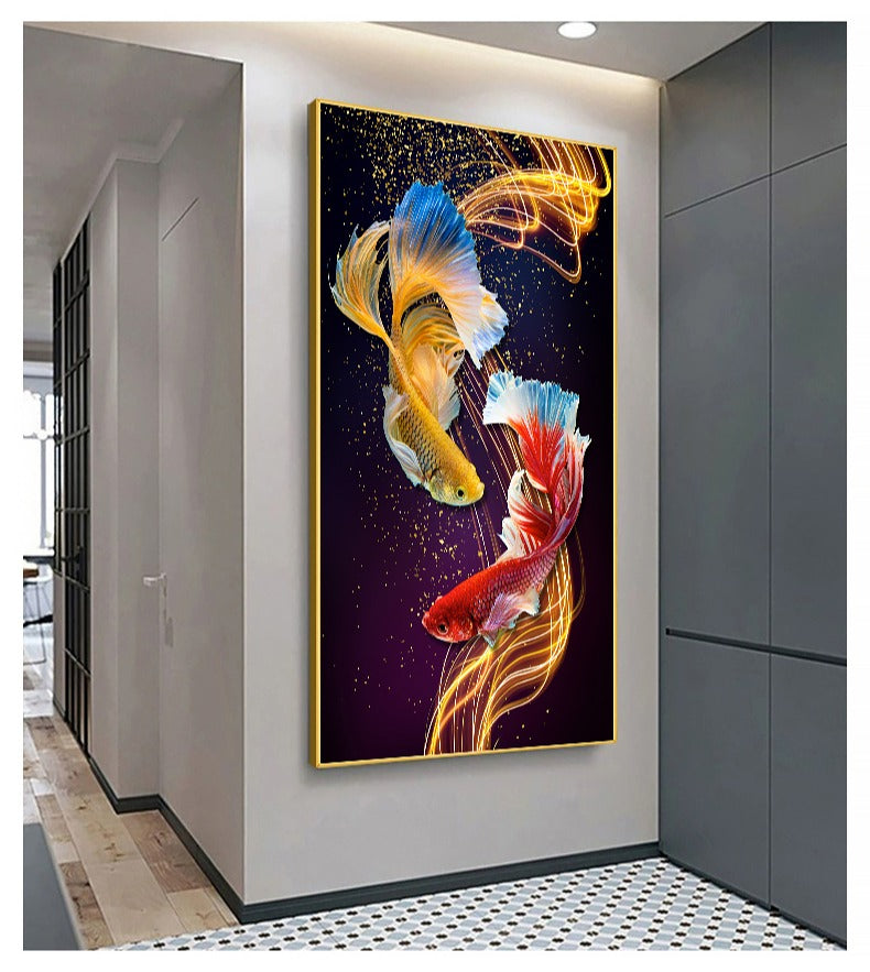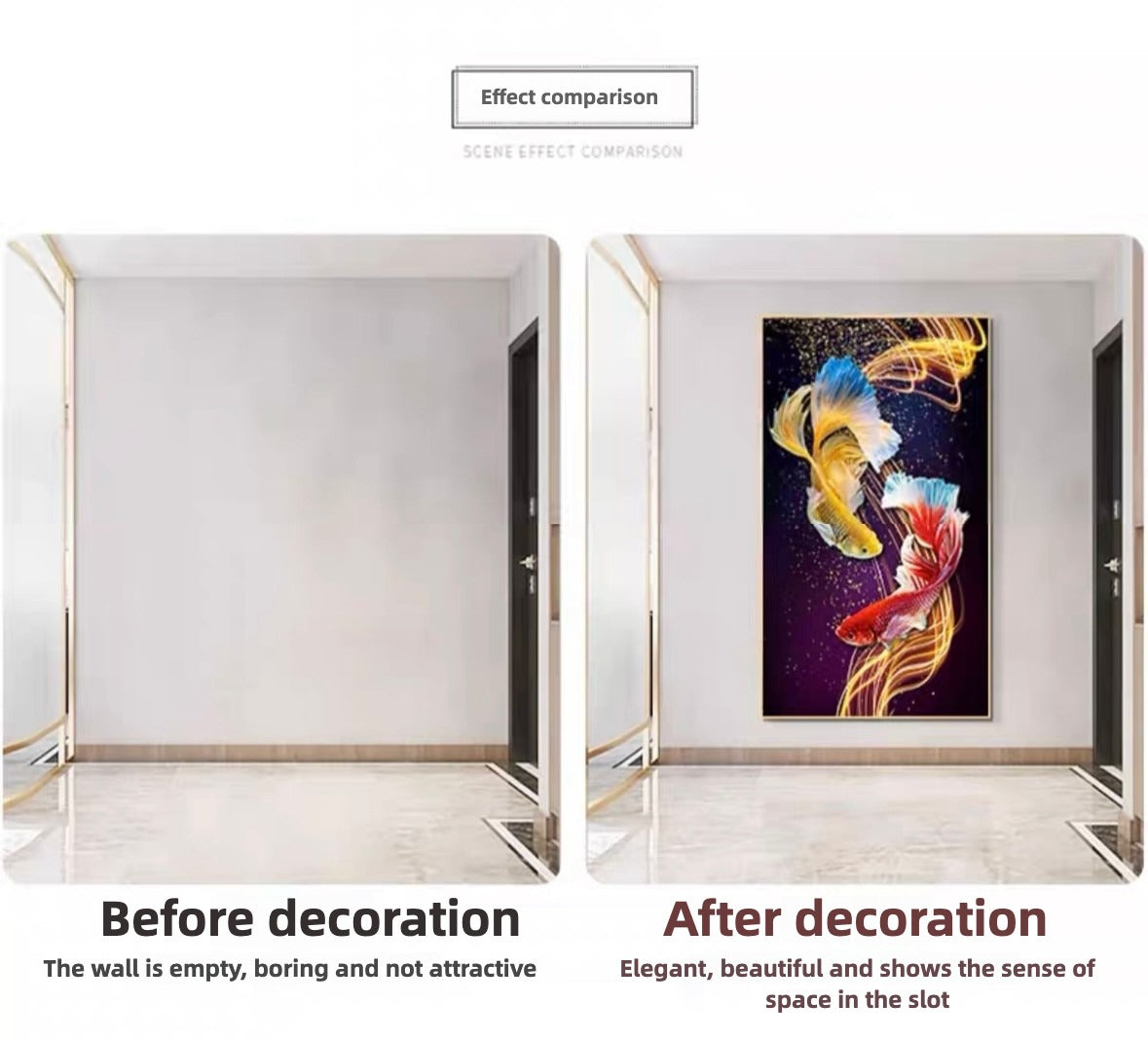 Transform your living room into a space of positivity and prosperity with the Koi Fish Luck Decorative Painting. Featuring vibrant koi fish swimming harmoniously, this artwork symbolizes abundance, success, and harmony, making it an ideal Feng Shui addition to your home. Crafted with fine detail, the painting captures the grace and resilience of koi fish, offering both aesthetic beauty and symbolic significance.