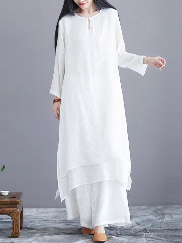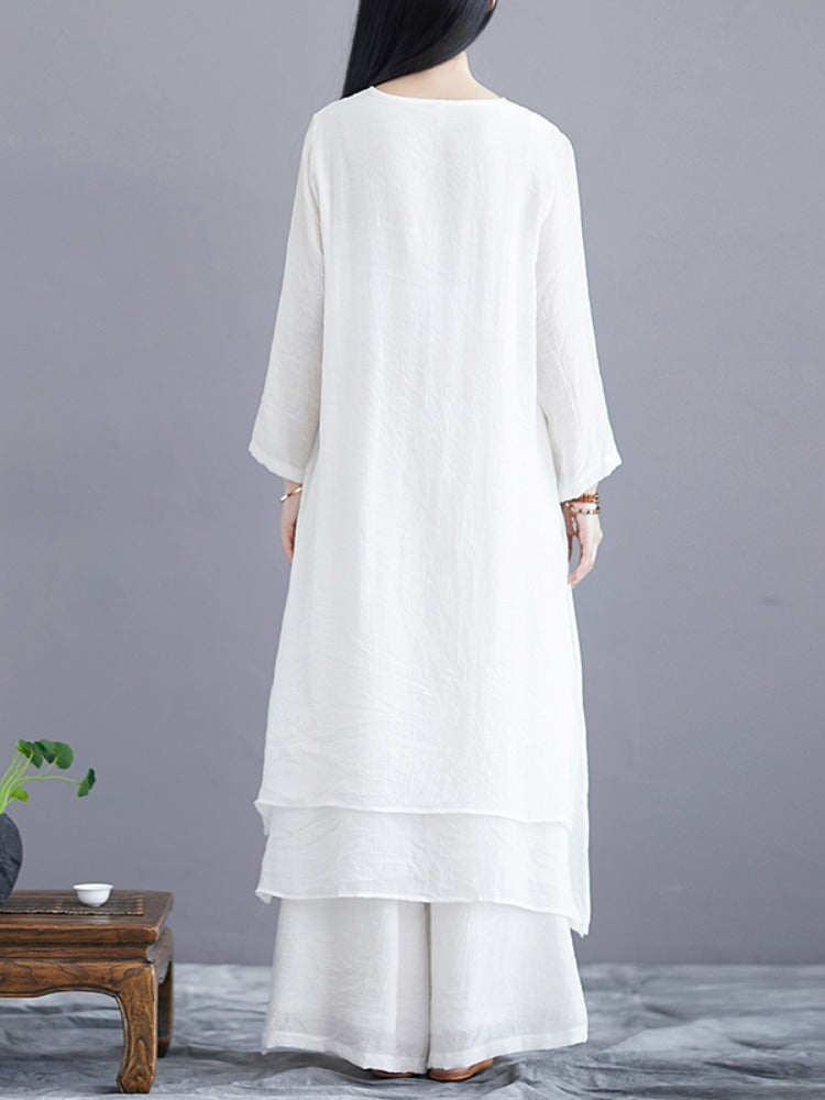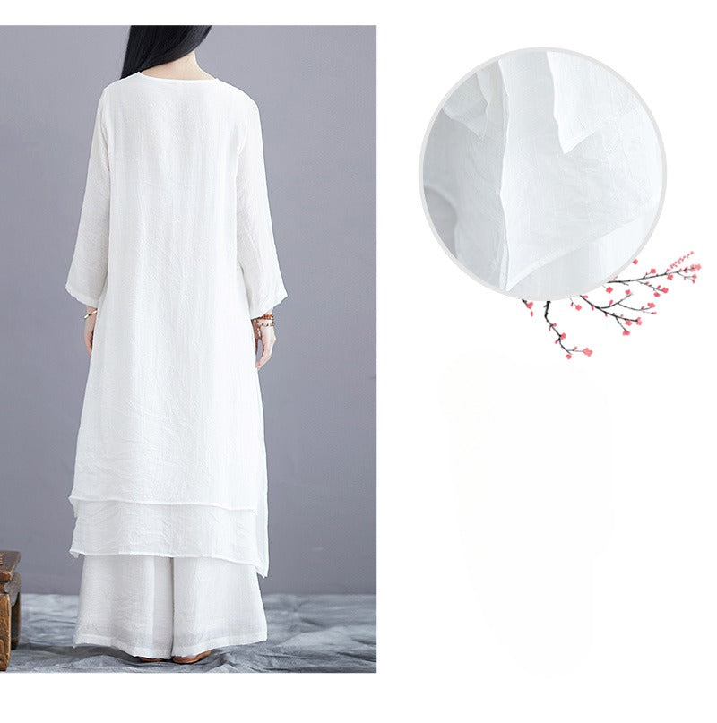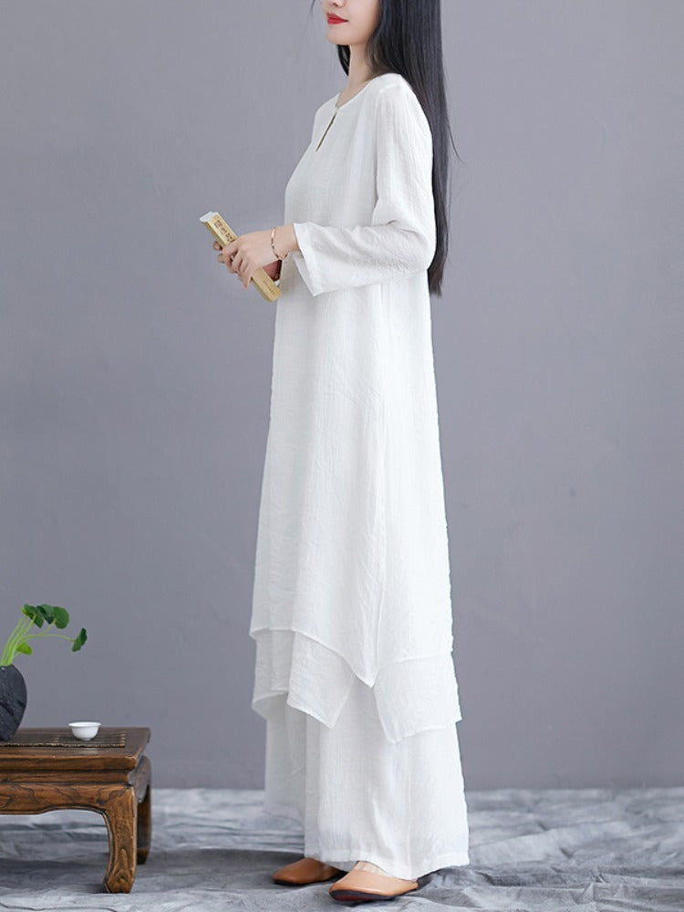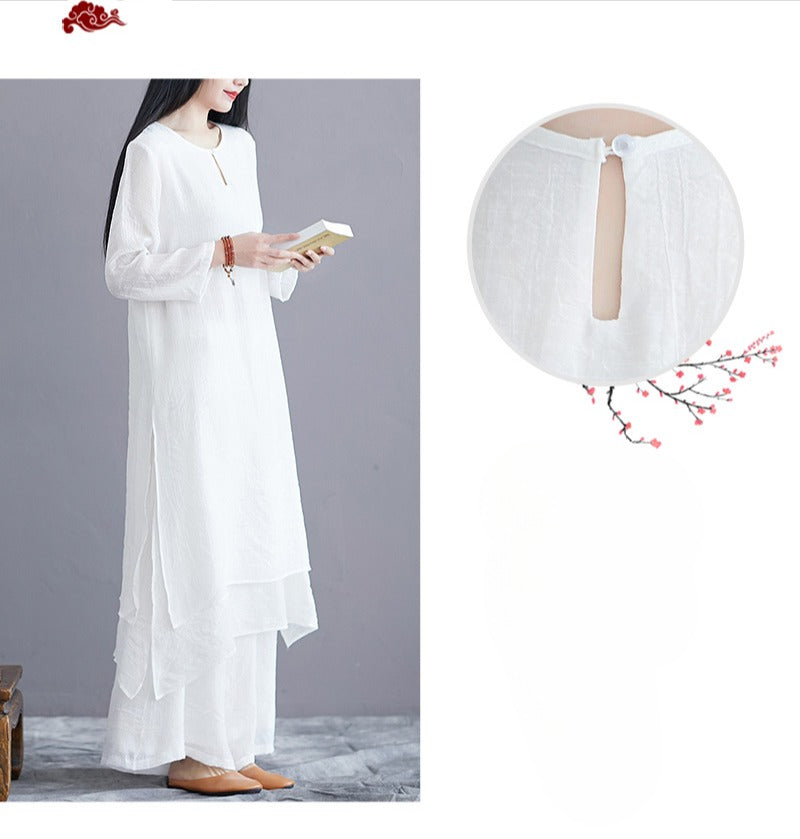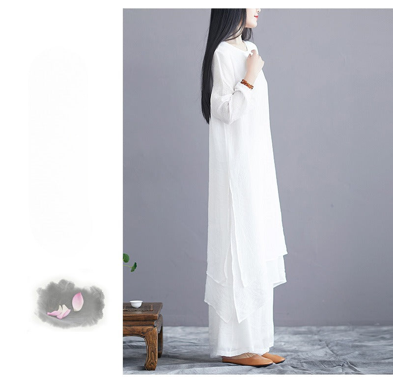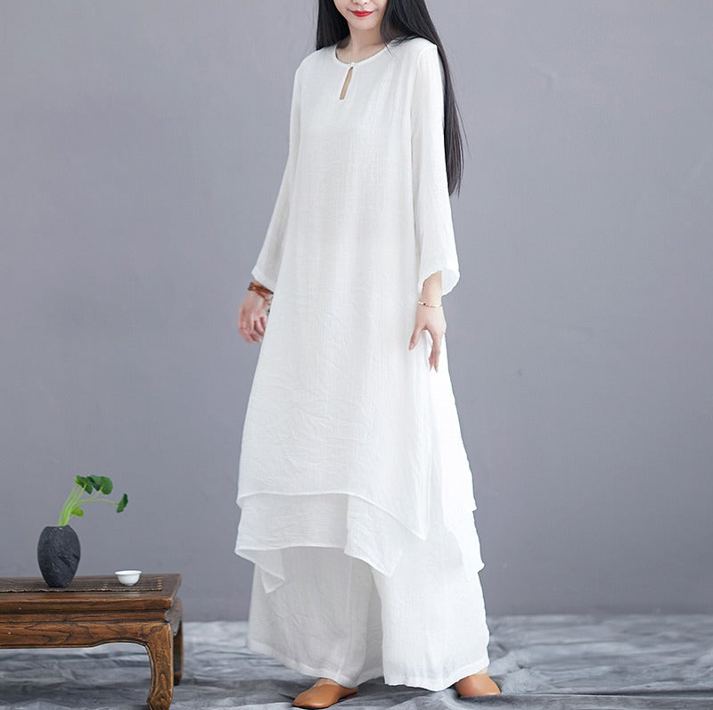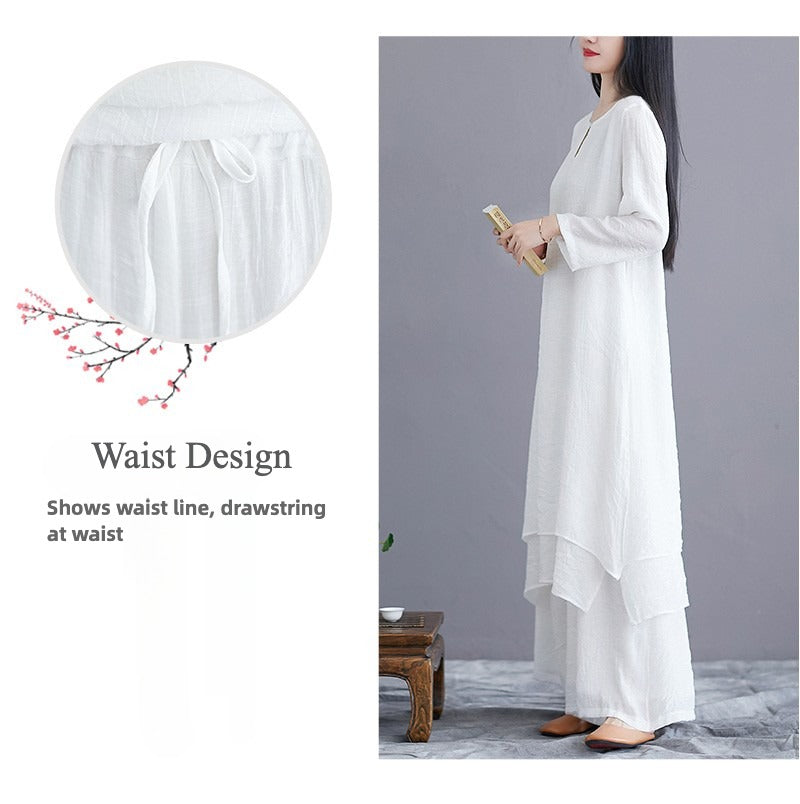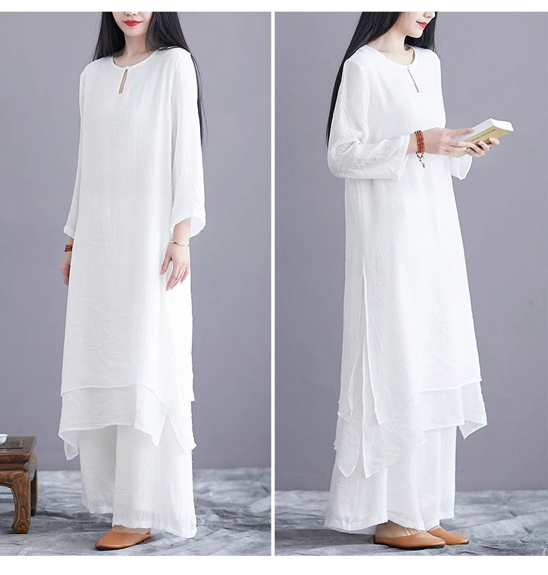 Midi Tunic Dress Wide Leg Pants Meditation Zen Practice Dance Clothing