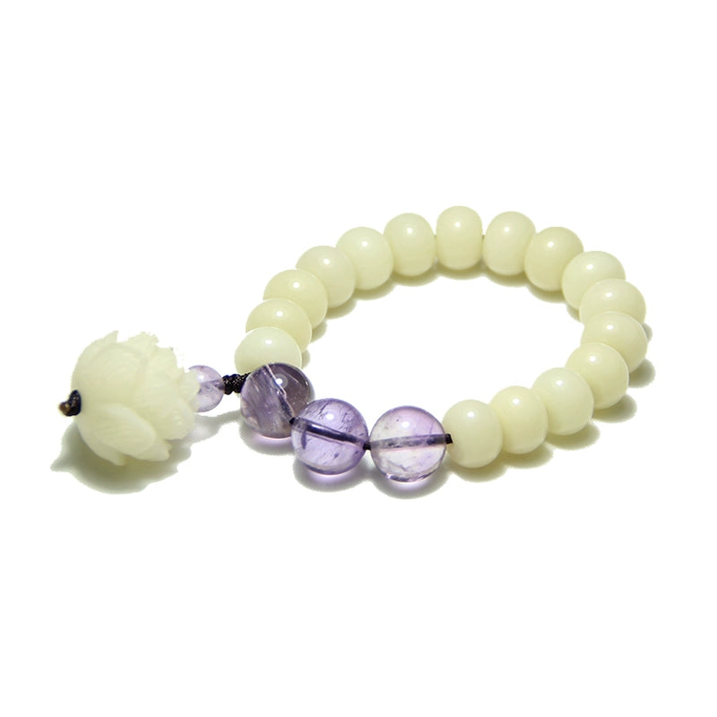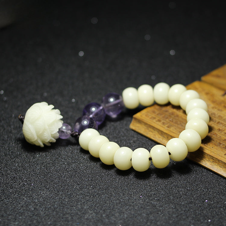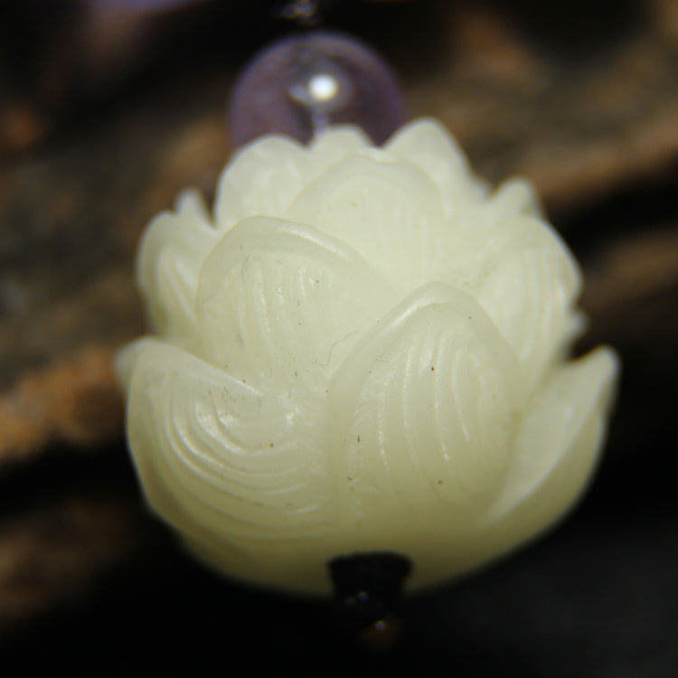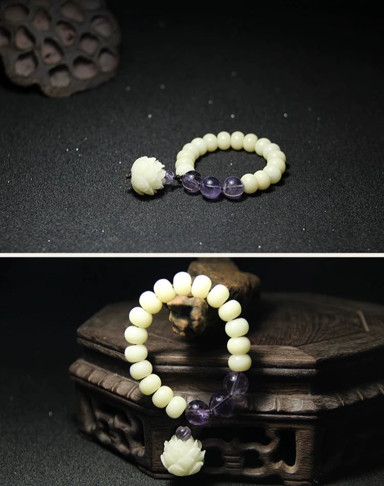 Natural white jade bodhi root lotus amethyst zen jewelry bracelet