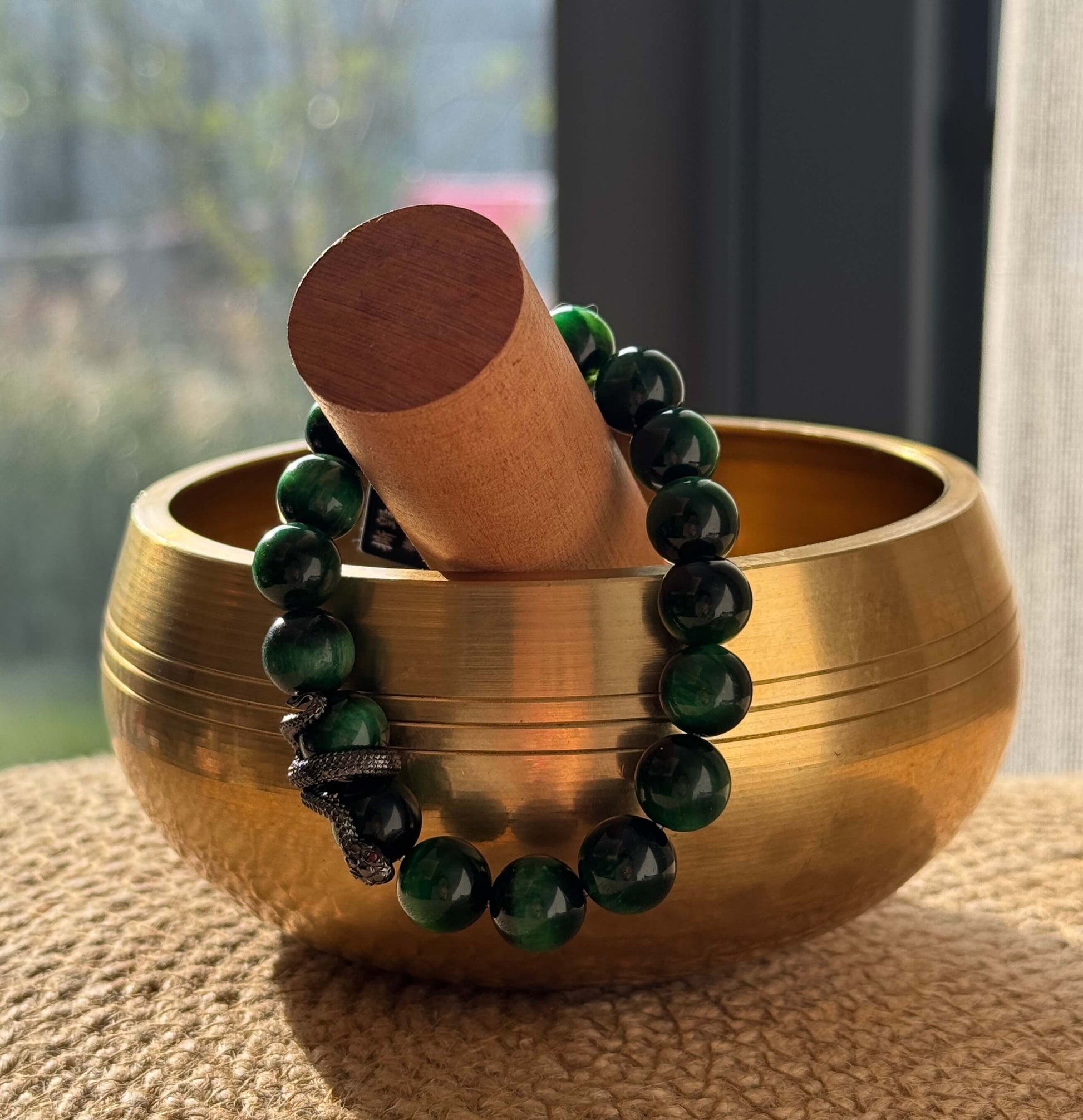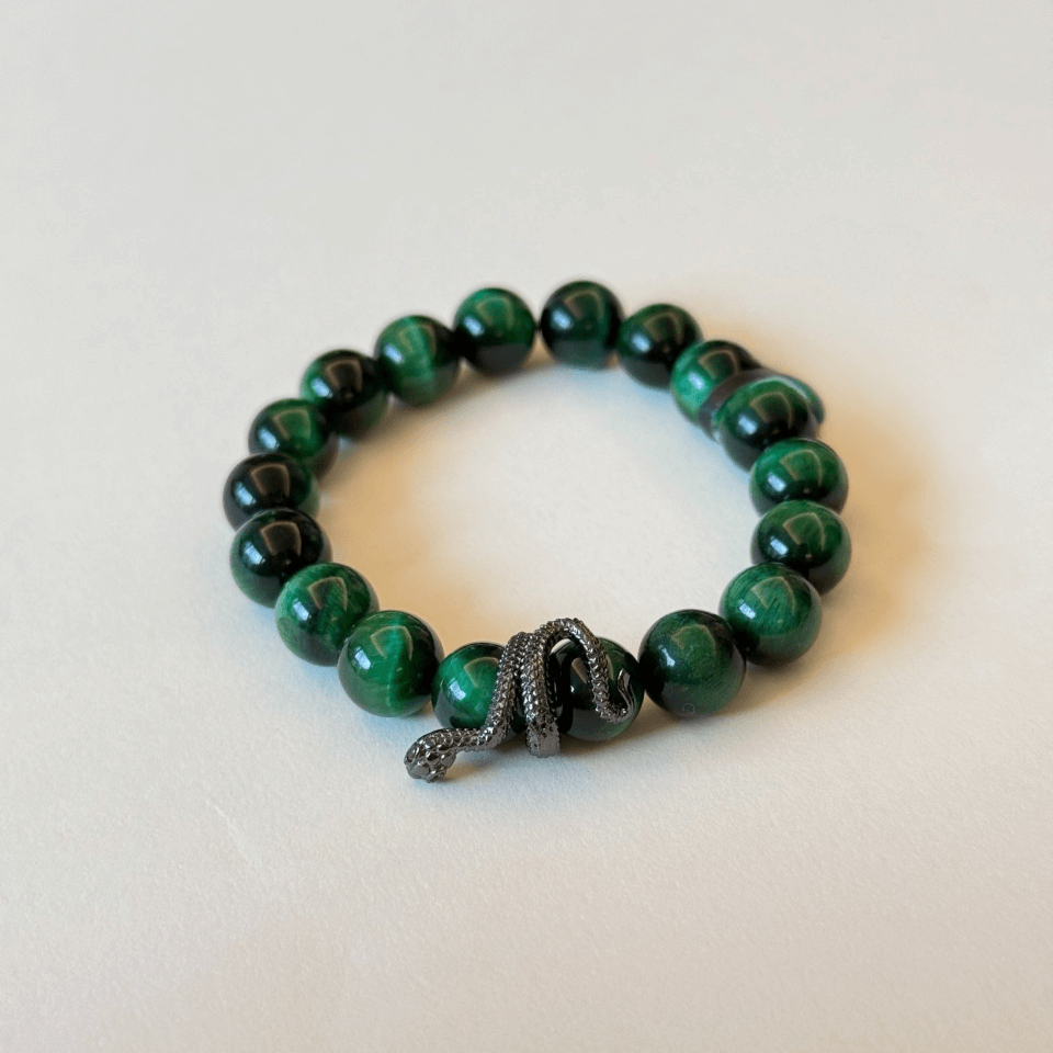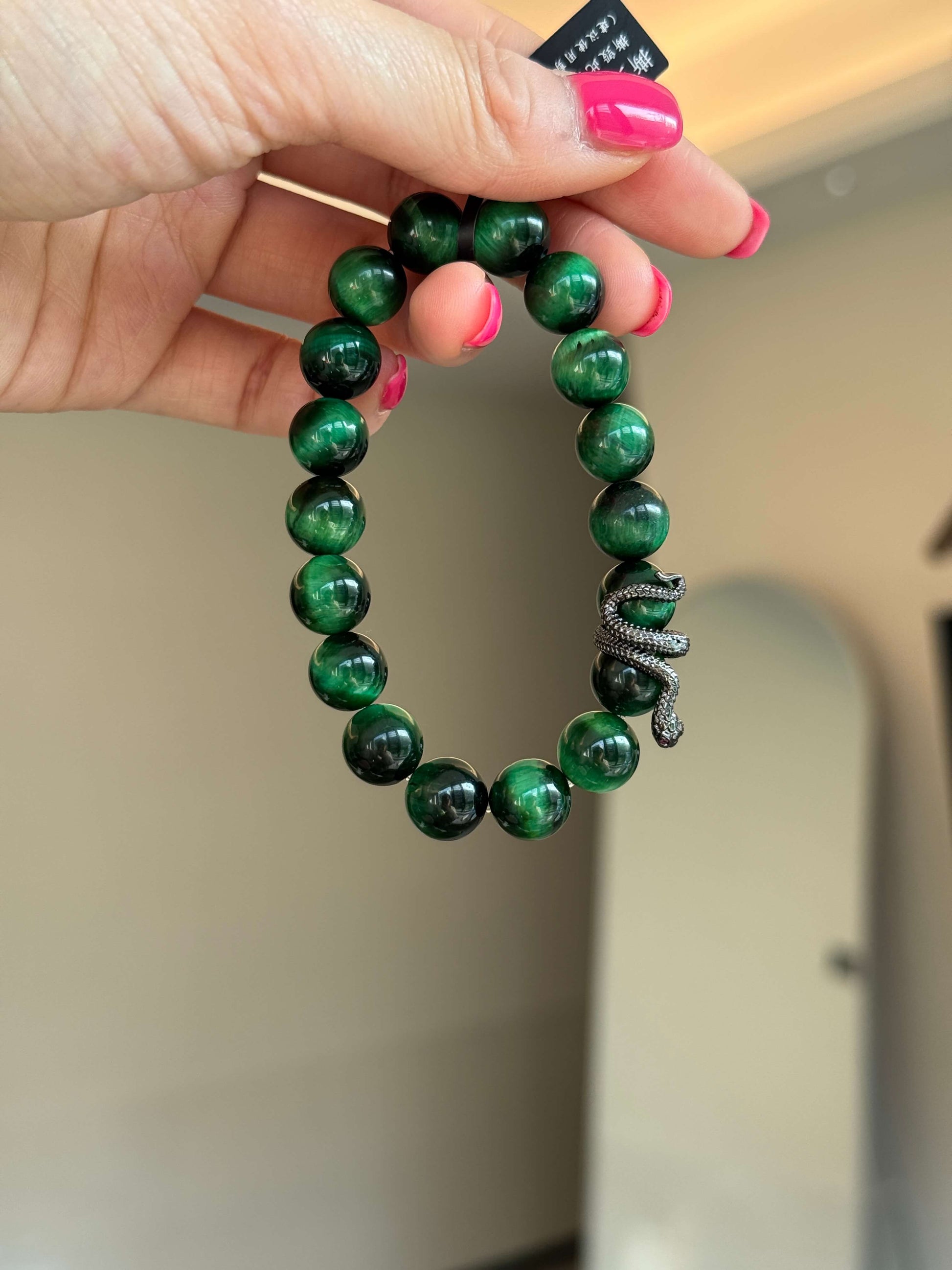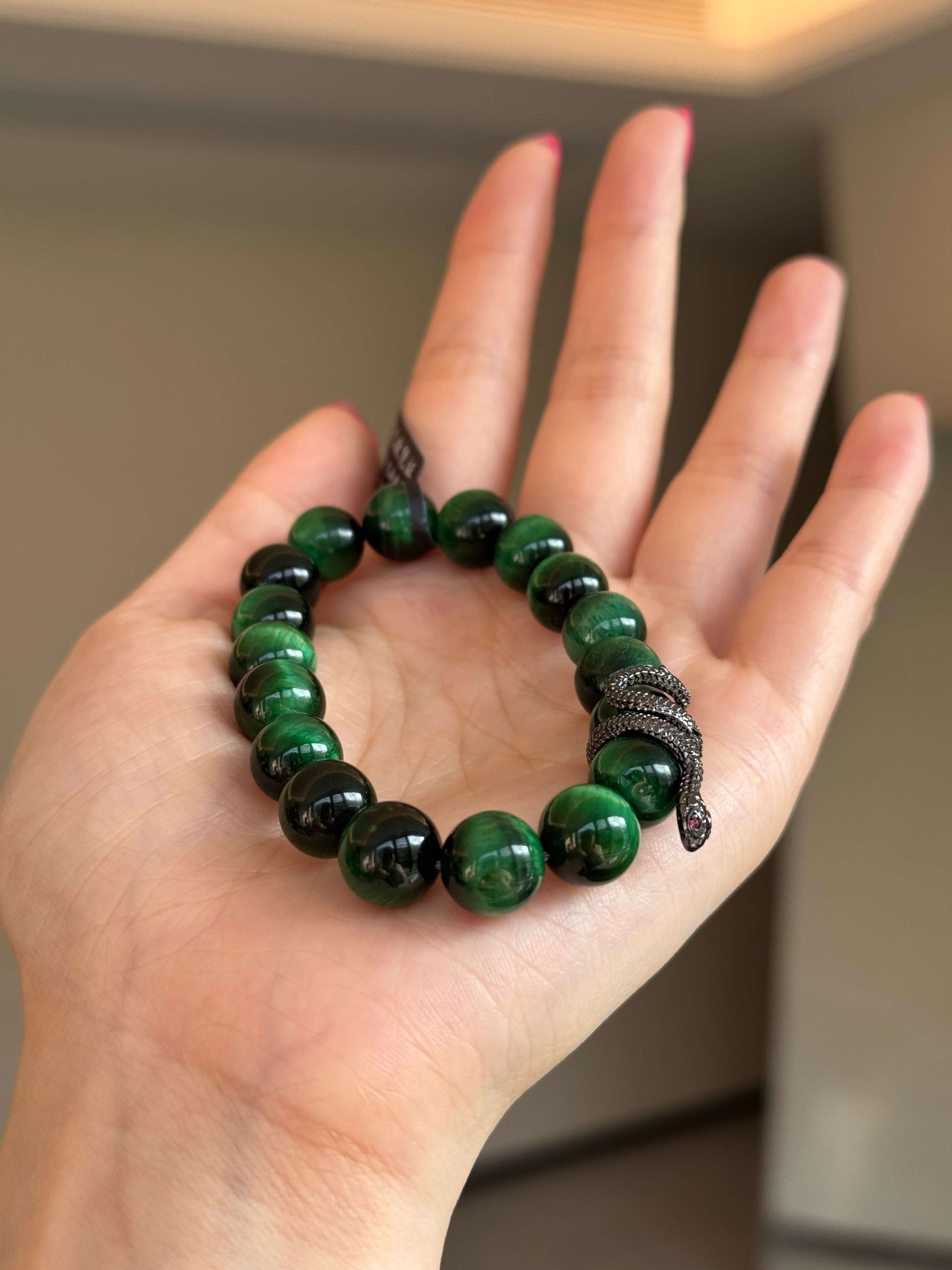 The 「Serpent Institute]」bracelet features green Tiger's Eye as the main stone, symbolizing wisdom, courage, ambition, and the relentless drive to move forward!