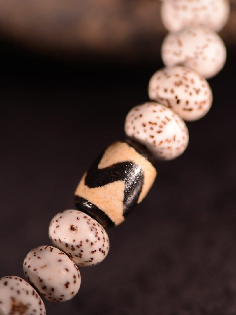 Bodhi in Sanskrit translates to “enlightened” or "awakened," therefore the bodhi seed means “enlightened seed”. Prince Siddhartha is said to have accomplished enlightenment when meditating below a bodhi tree. As an “enlightened” seed, many practitioners wear the bodhi seeds during their meditation practices to ultimately reach enlightenment. Bodhi is also a term in Buddhism to reflect a Buddha’s understanding of the true nature of things. These dark-speckled seed beads have special meaning for all seekers of divine wisdom.