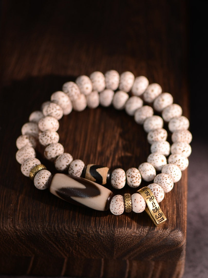 Star Moon Bodhi Tiger Tooth Dzi Bead Agate Tibetan Keep Away Evil Buddhist Beads Bracelet
