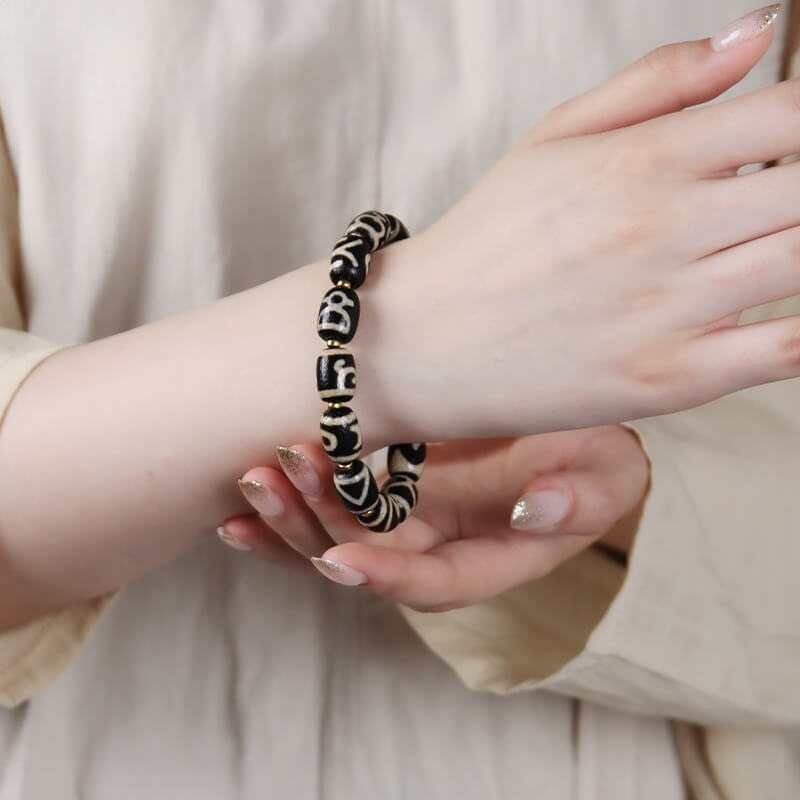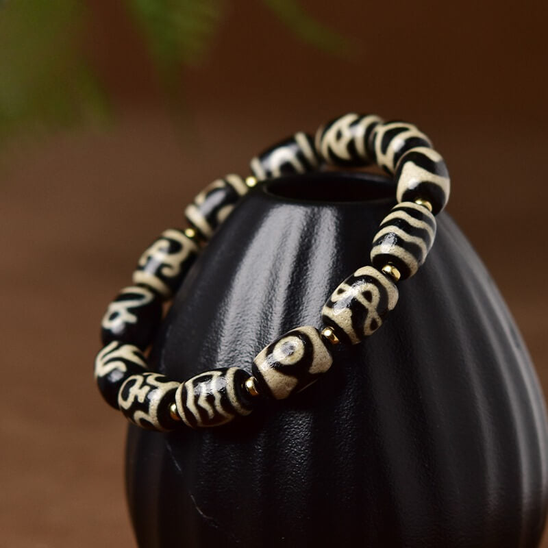 Tibetan Natural Agate Third Eye Dzi Bead Wealth & Prosperity Bracelet