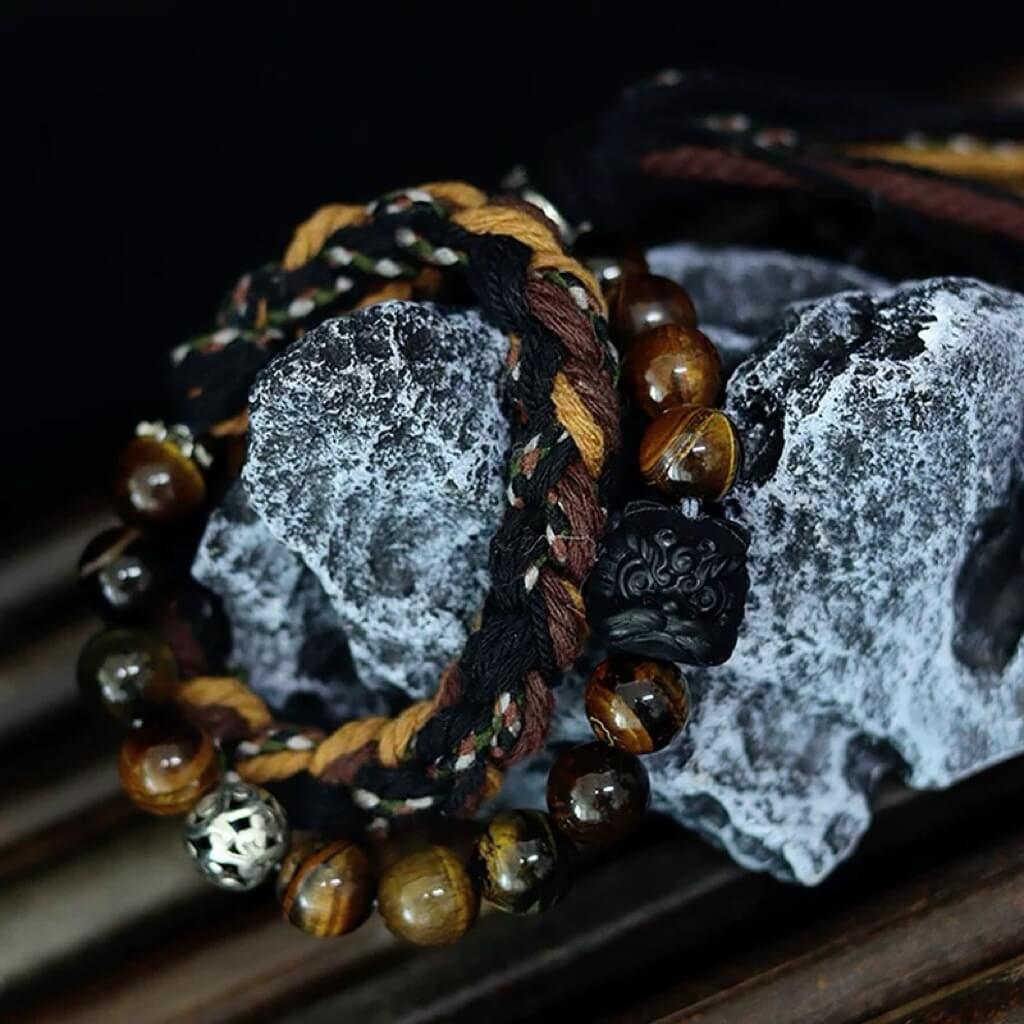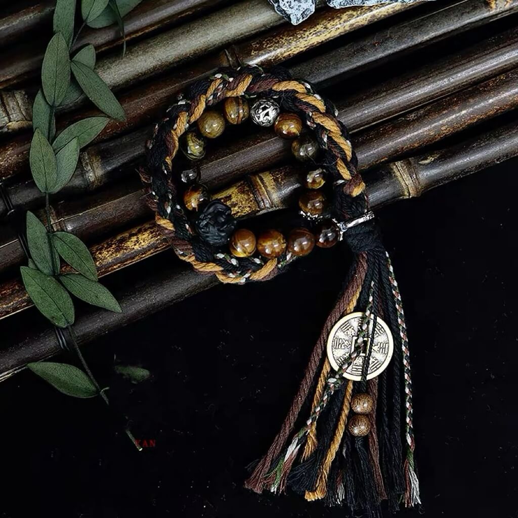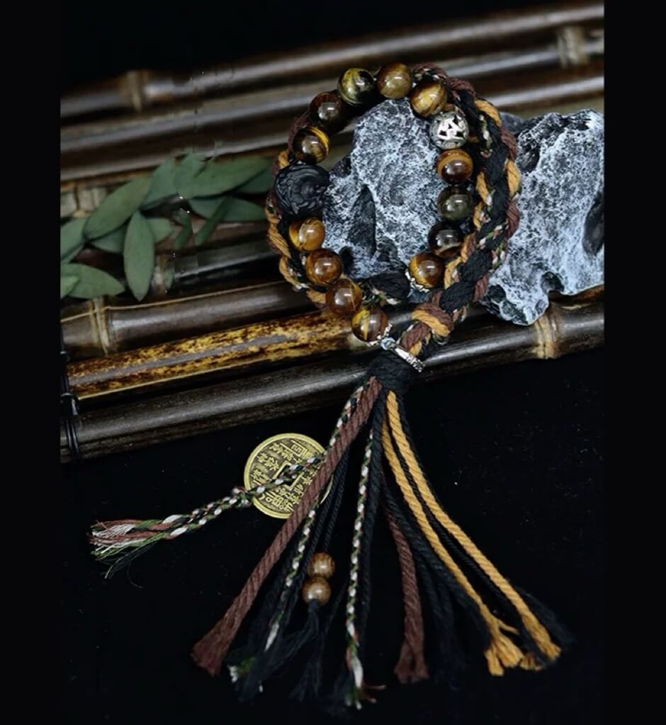 Tiger Eye Stone Tibetan Hand Rope - Courage - Strength - Prosperity