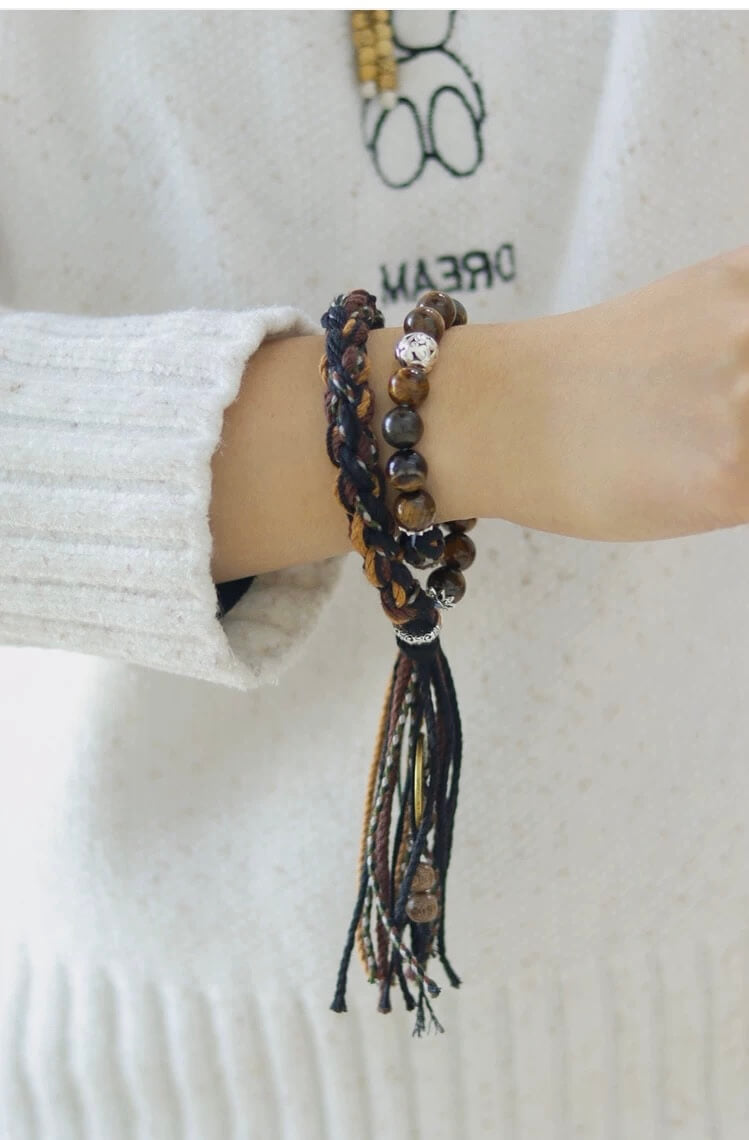 This Tiger Eye Stone Tibetan Hand Rope is a perfect blend of traditional Tibetan culture and tiger eye stones. Each selected tiger's eye stone, with its unique luster and texture, symbolizes courage and strength, bringing a mysterious guardian to your daily life.