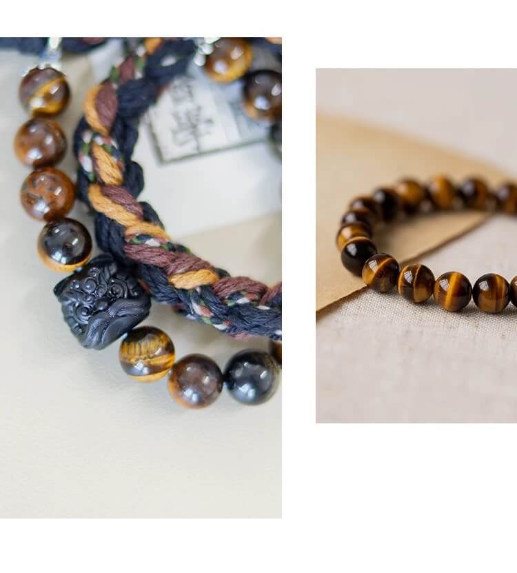 ● Tiger's Eye: Selected natural tiger's eye stones, each one exudes a firm and mysterious aura. Tiger's eye stone is known for its strong guardian power, which can ward off evil spirits and grant peace.