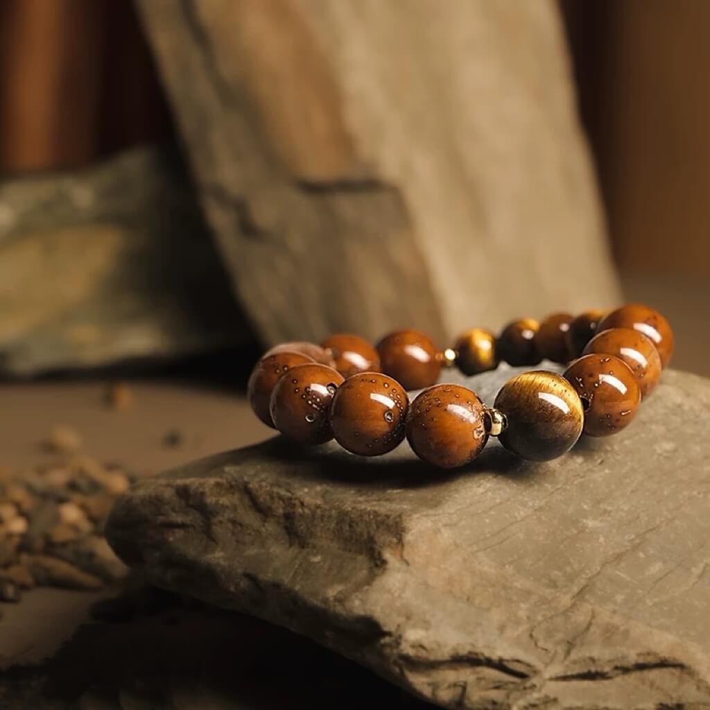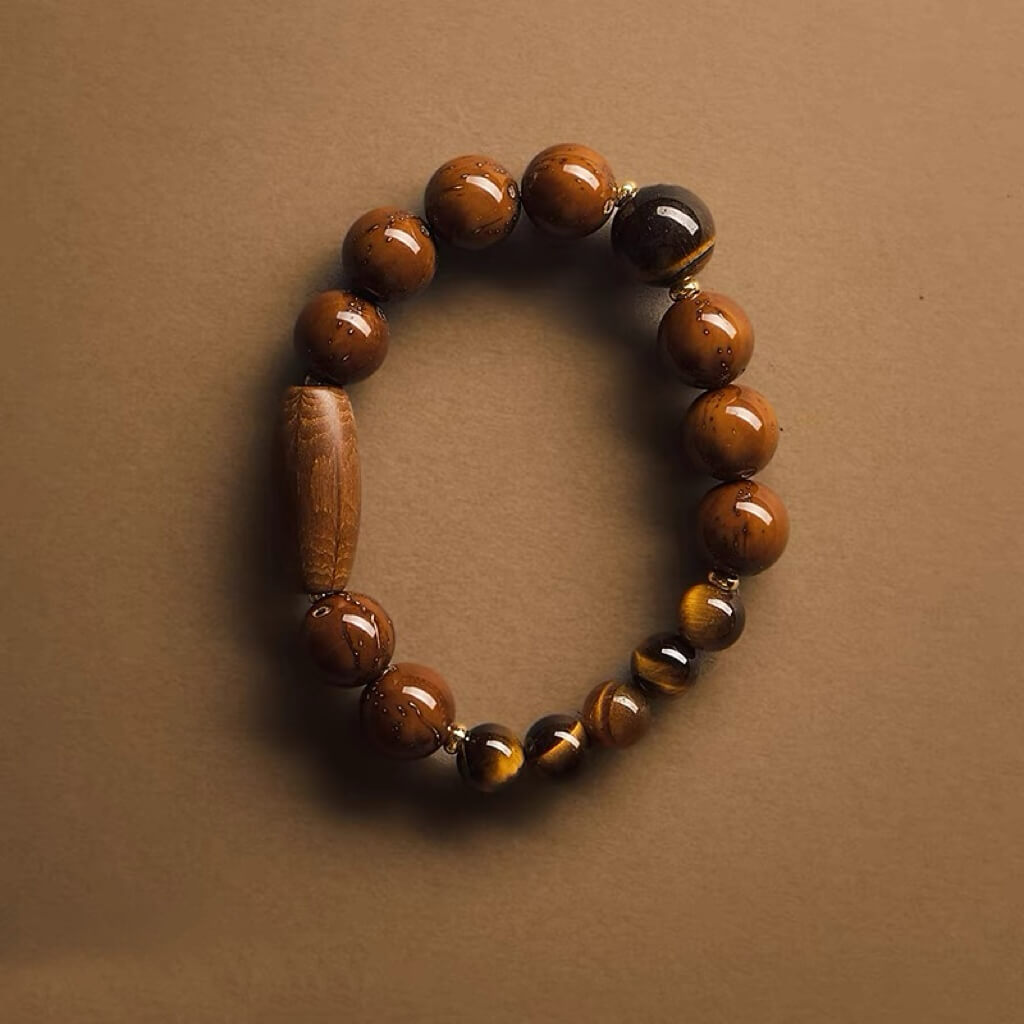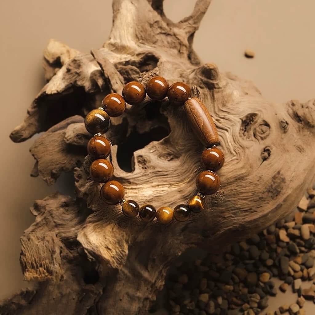 This bracelet combines the sharp radiance of Tiger's Eye, the wealth symbolism of Purple Golden Rat, and the protective energy of Six-Path Wood, uniting them into one powerful piece.