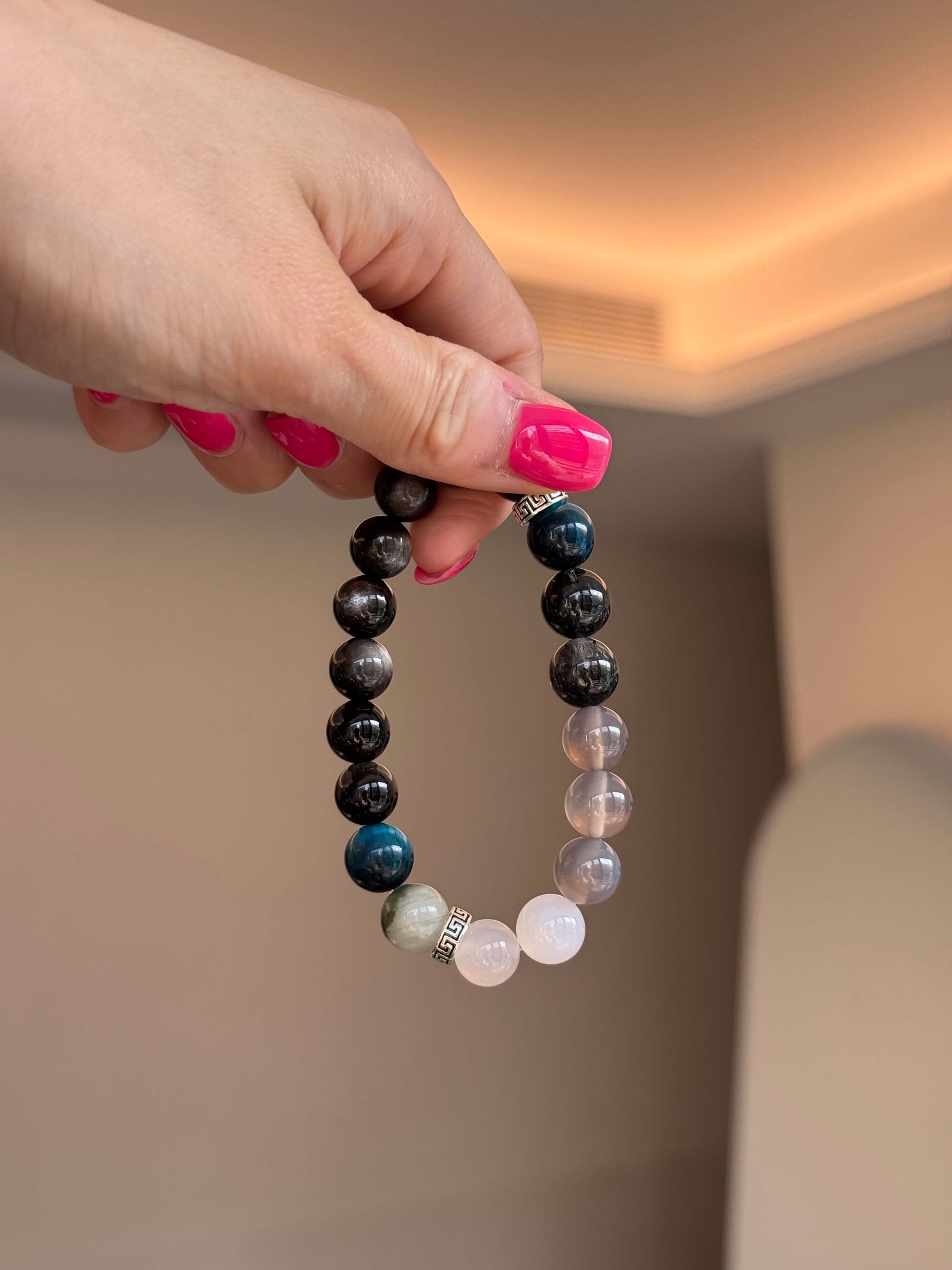 • Cleanse Regularly:Crystals can absorb and hold energy. Regular cleansing can help maintain their protective properties. You can cleanse your bracelet with sage smoke, in a stream, or under moonlight.