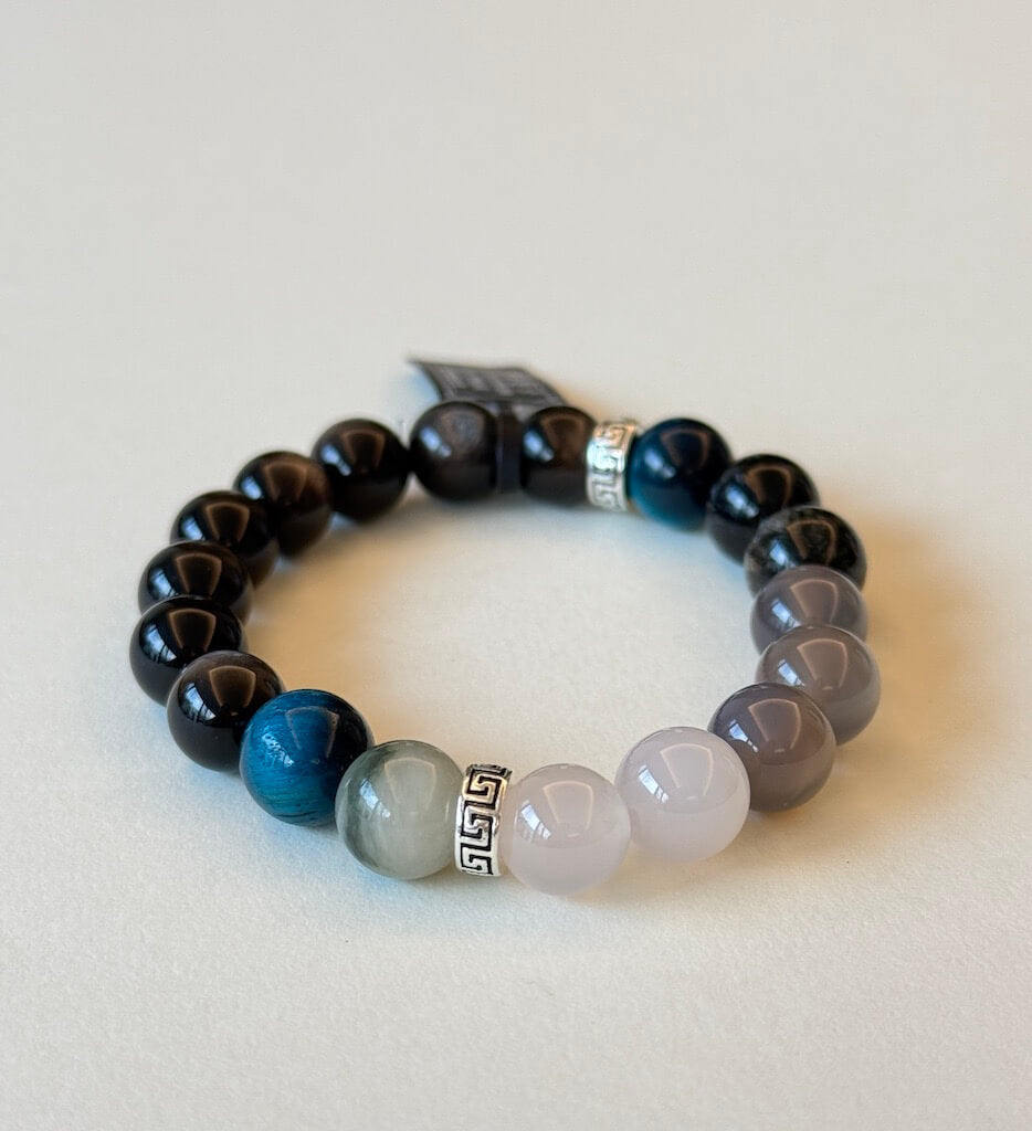 Triple Protection Bracelet - Silver Obsidian · Tiger's Eye · Black Rutilated Quartz