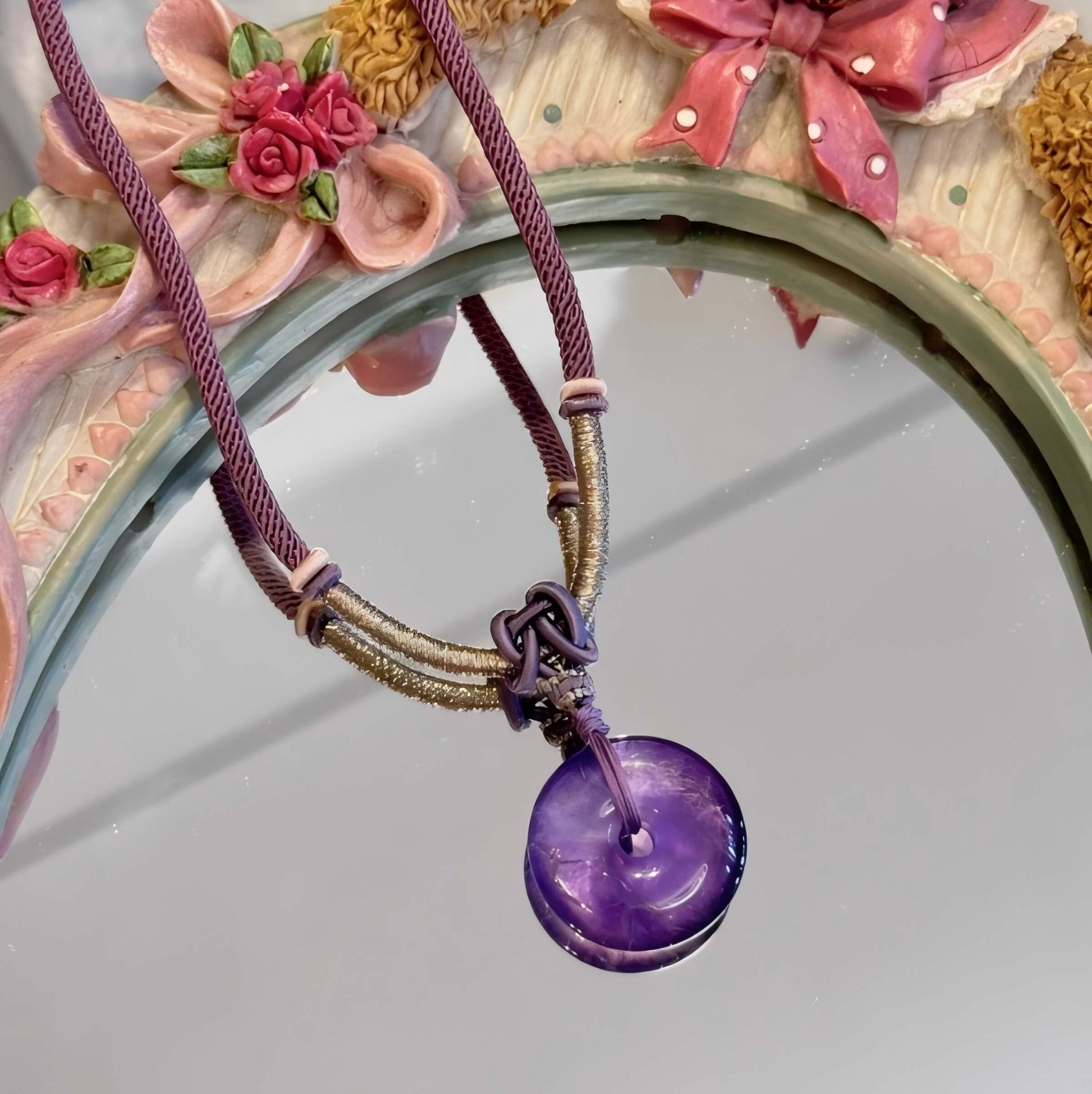 Uruguayan amethyst, known as the finest of all amethysts, attracts crystal lovers with its deep purple color and unique energy. Wearing this peace button is like carrying a mysterious power from nature, which improves one's chi and magnetic field, unites the strange energies around you, and brings you good luck and wealth.