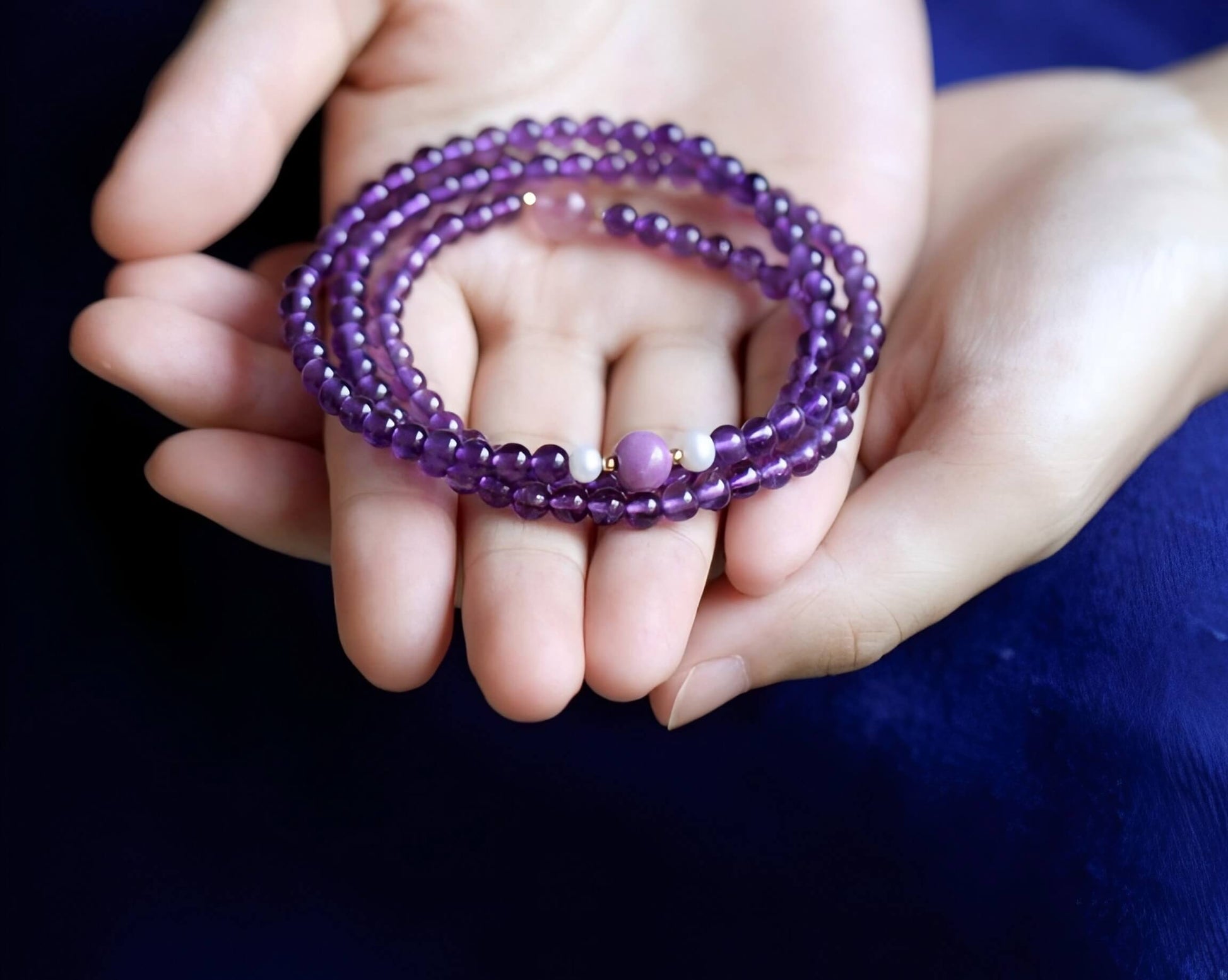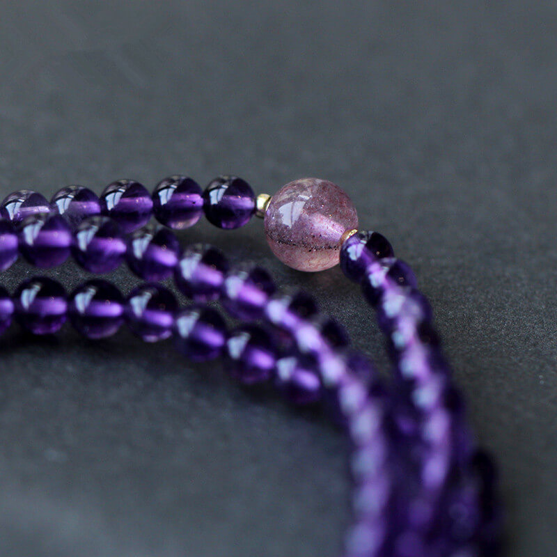 Violet Wisdom MultiLoop, with its unique purple hue and elegant design, can be worn as both a bracelet and a necklace. Wearing an amethyst bracelet while meditating or relaxing can help focus attention, enhance meditation, and strengthen the connection with the inner self. Wearing an amethyst bracelet for yoga or light exercise can enhance the coordination of mind and body while enjoying the healing energy of the crystal. Or wearing it in work or study situations that require concentration can improve mental clarity and memory, helping to improve efficiency.