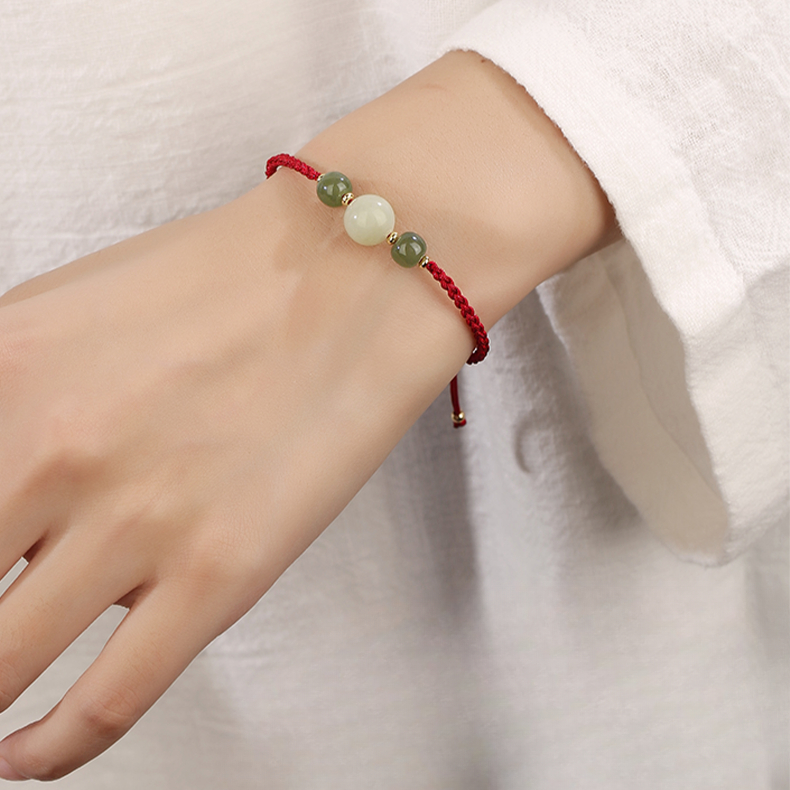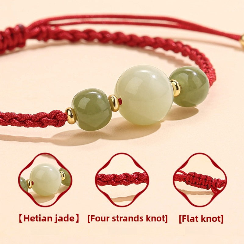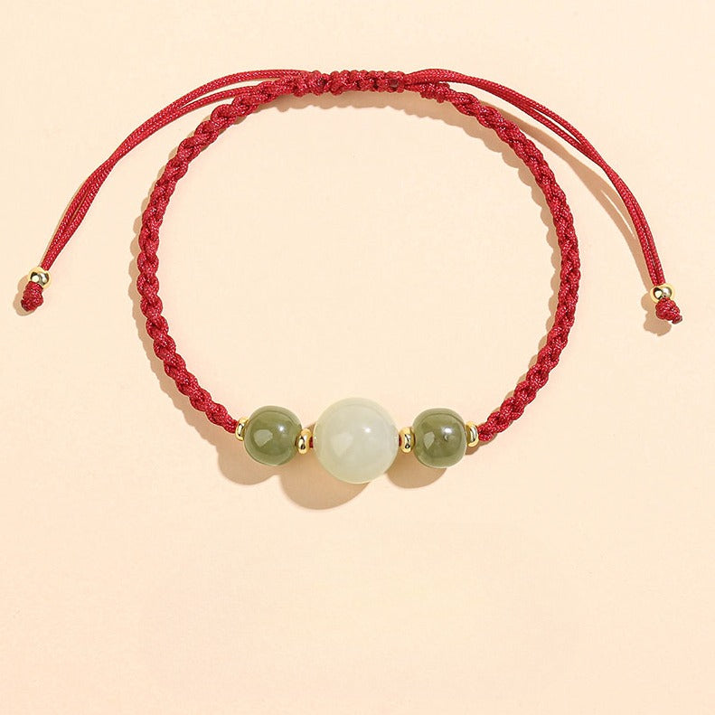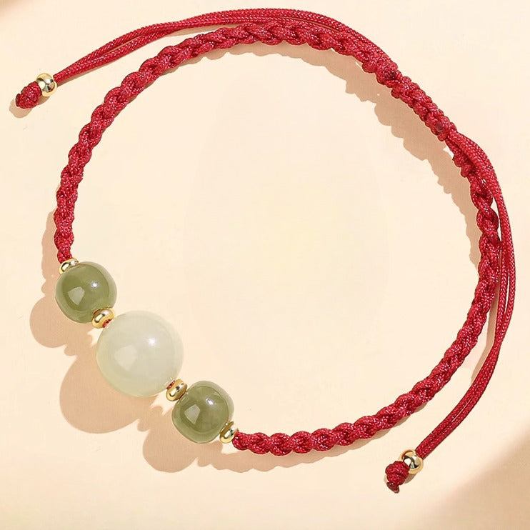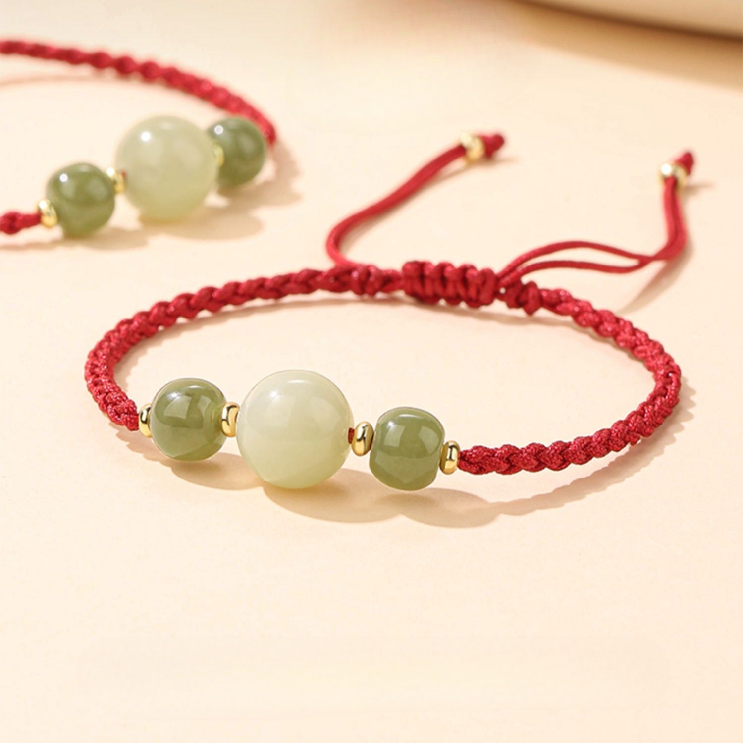 Zen Healing 2025 Chinese Zodiac Snake Hetian Jade Luck Bead Red String Bracelet