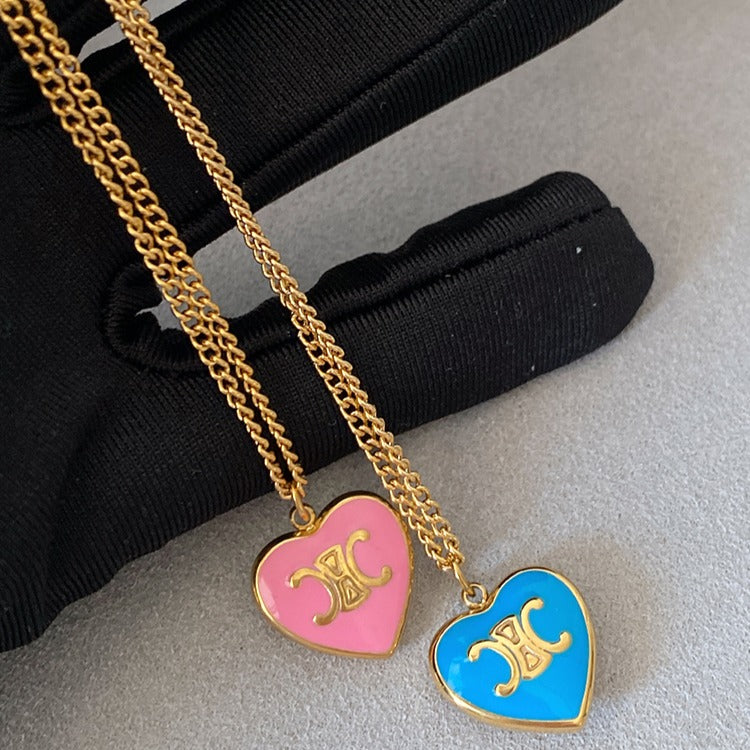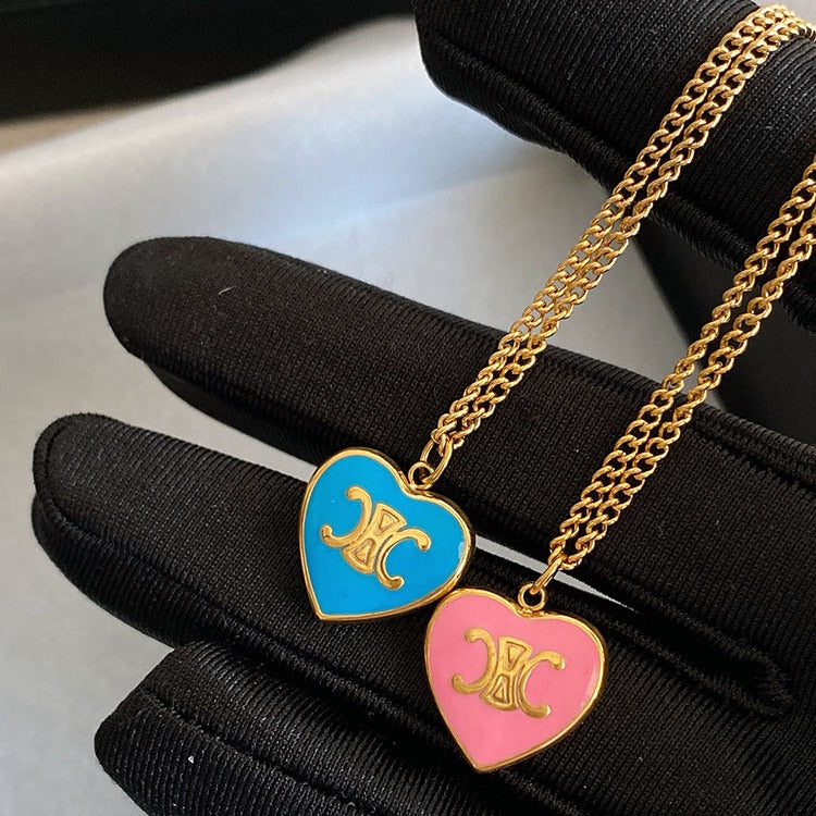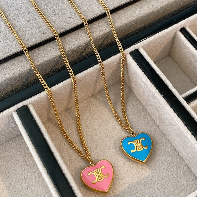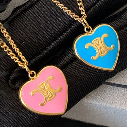 💖 Playful Dopamine Color Palette – Enamel heart pendant in soft pink or calm blue
