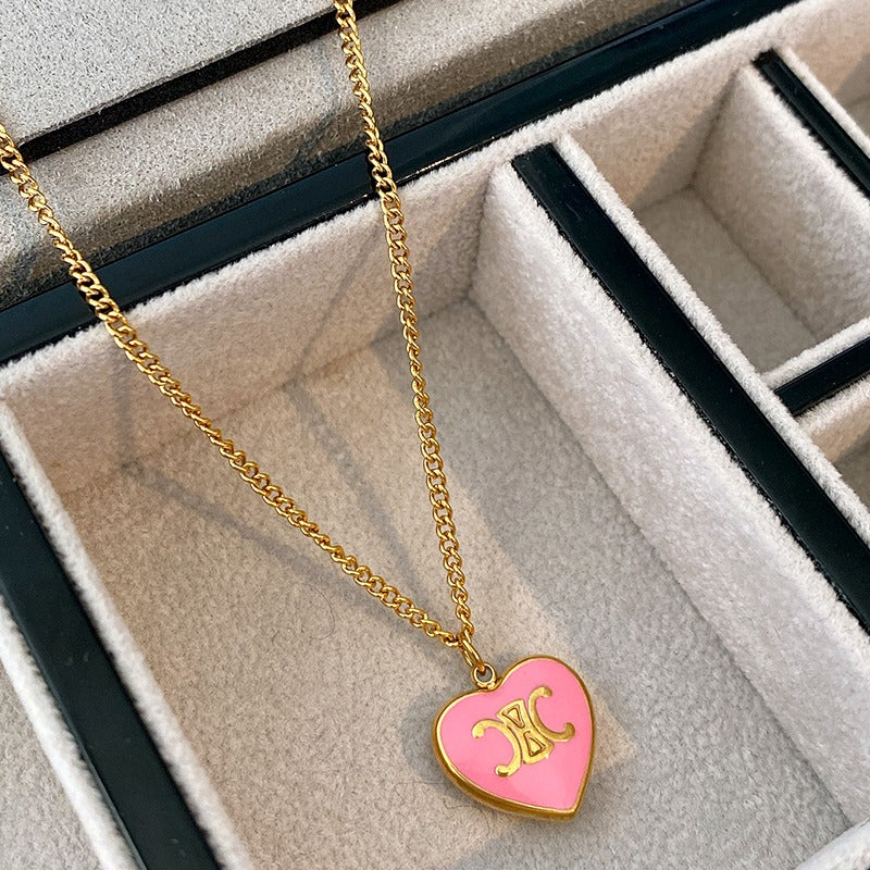 Zen Healing 24K Gold Plated Dopamine Heart Enamel Pendant Necklace