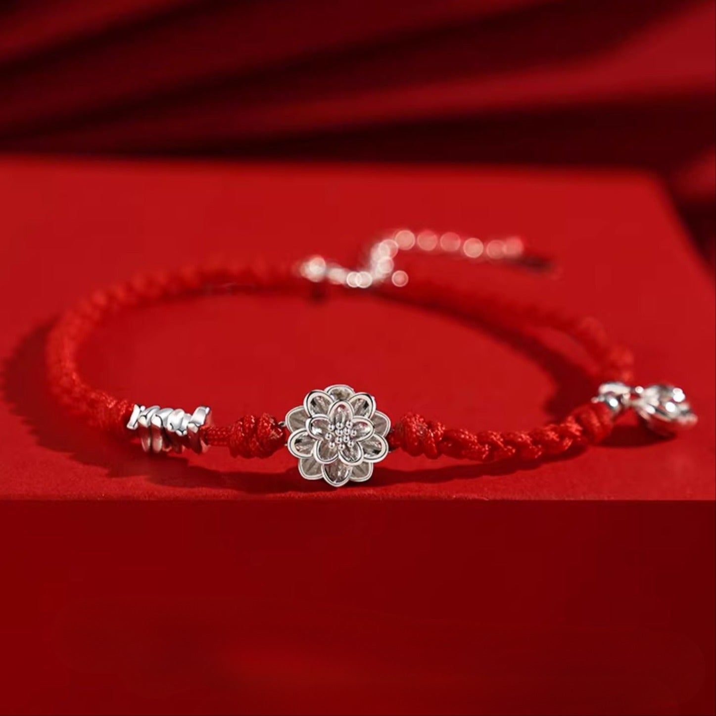 Zen Healing 925 Silver Lotus Luck Red String Bracelet