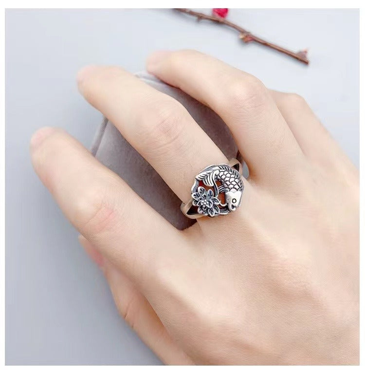 Zen Healing 925 Silver Koi Fish Luck Ring