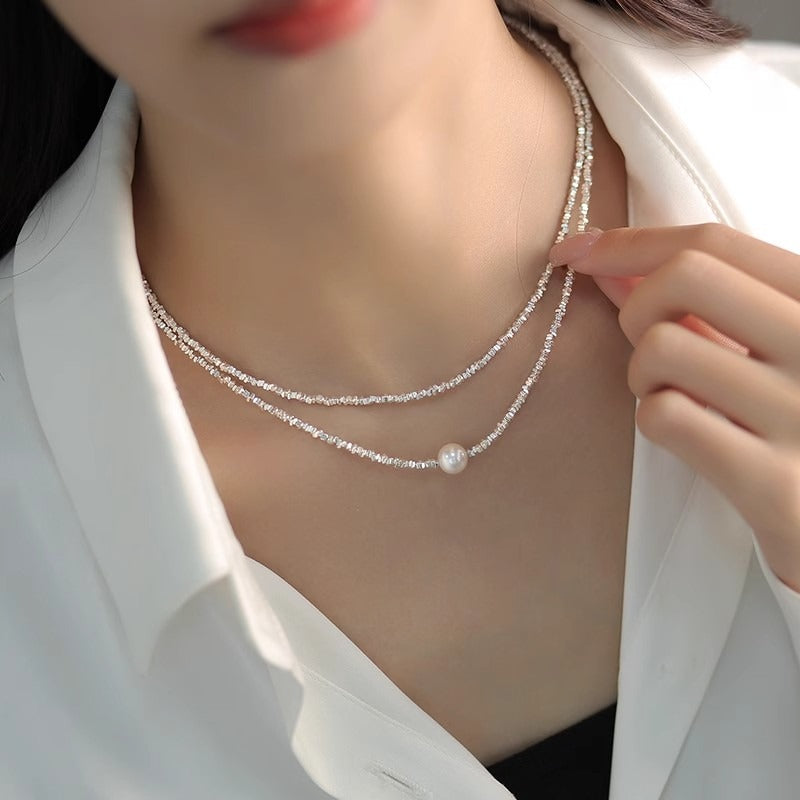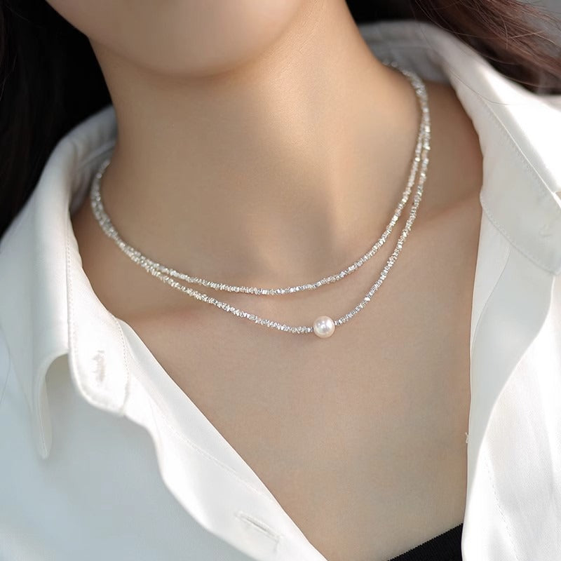 The 925 Sterling Silver Irregular Fragment Swarovski Pearls Necklace blends sculptural design with high-end detailing. The chain, made from real 925 sterling silver, features an uneven fragment style that gives it a bold, artisanal edge. Choose from the pure silver version or pearl-accented options featuring Swarovski crystal pearls in 8mm or 10mm sizes. These pearls are renowned for their radiant finish and near-perfect roundness, offering a modern twist on classic elegance. An adjustable 40cm + 5cm chain makes styling effortless for various necklines or layered looks.