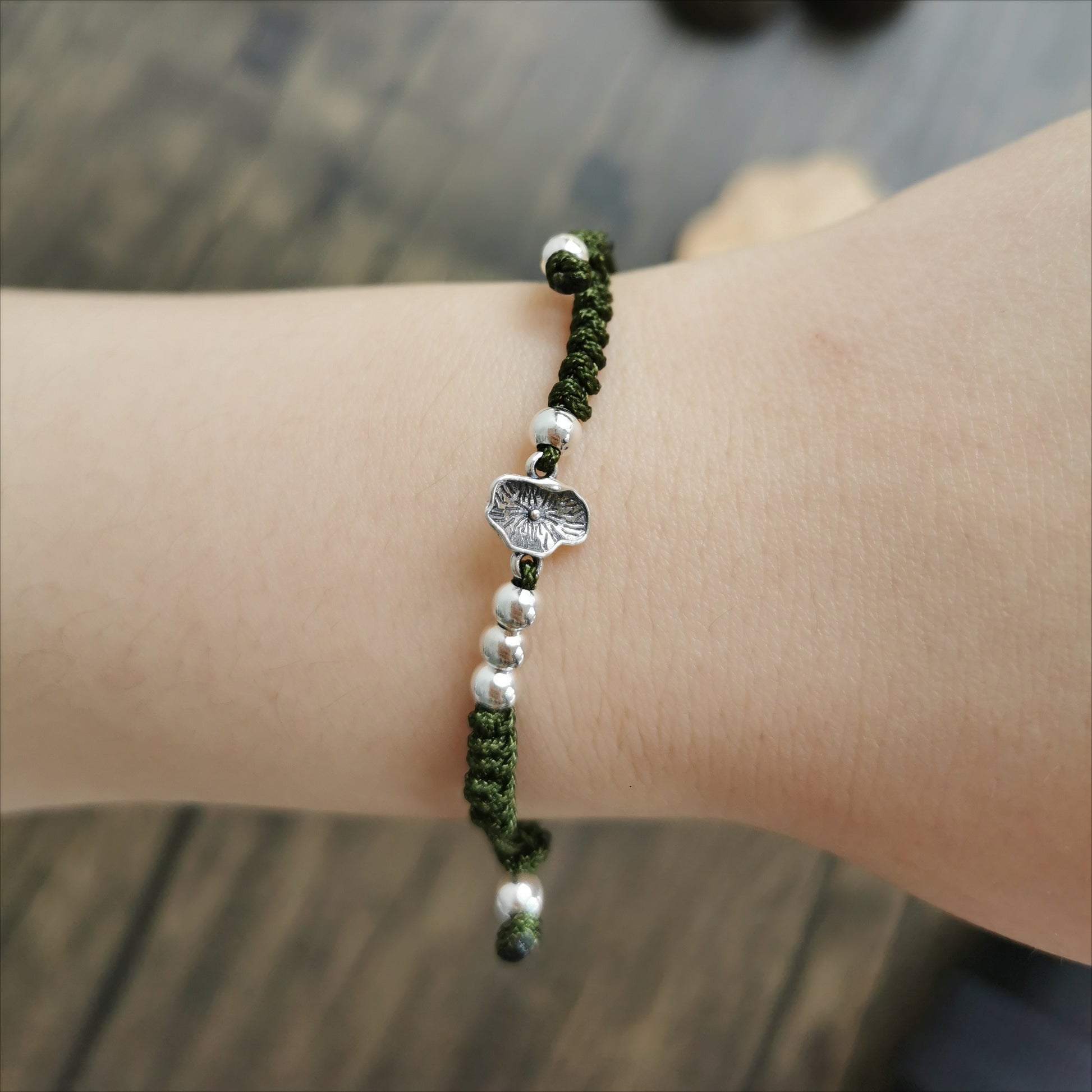 The 925 Silver Lotus Luck Braided Bracelet is a symbol of purity and resilience. Featuring a 9mm lotus leaf charm and 4mm sterling silver beads, this adjustable handwoven bracelet extends up to 28cm for a perfect fit. Crafted with high-quality, water-resistant thread, it ensures long-lasting durability and elegance.