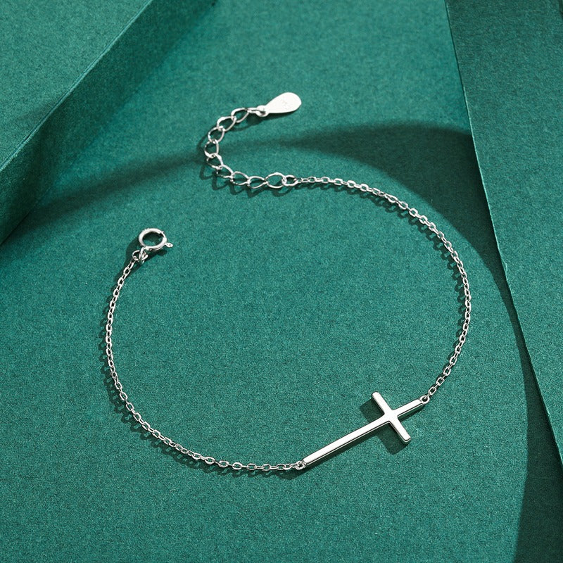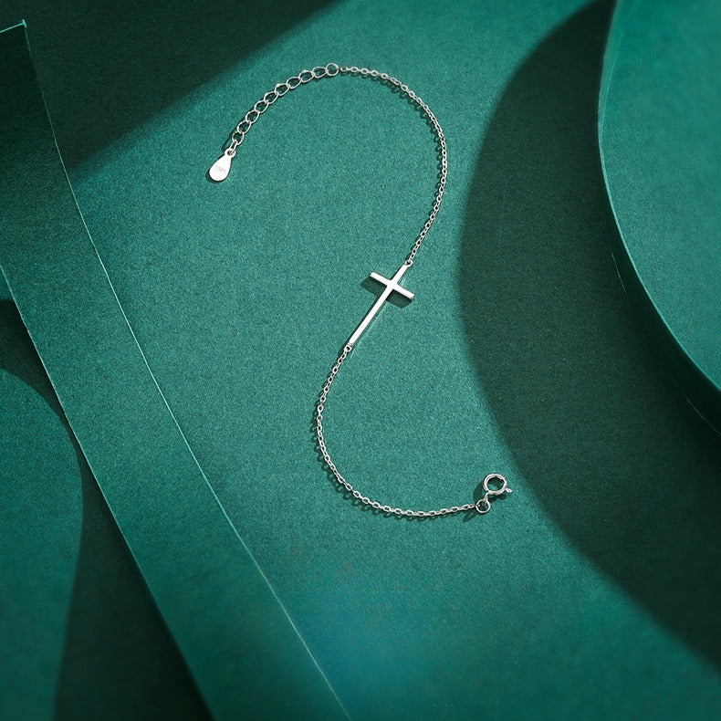 Zen Healing 925 Sterling Silver Minimalist Cross Faith Bracelet