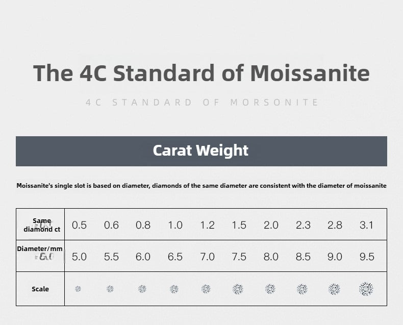 ✨ 2.0mm (0.035ct), 3.0mm (0.1ct), 4.0mm (0.3ct), 5.0mm (0.5ct), 6.5mm (1.0ct) per stone
