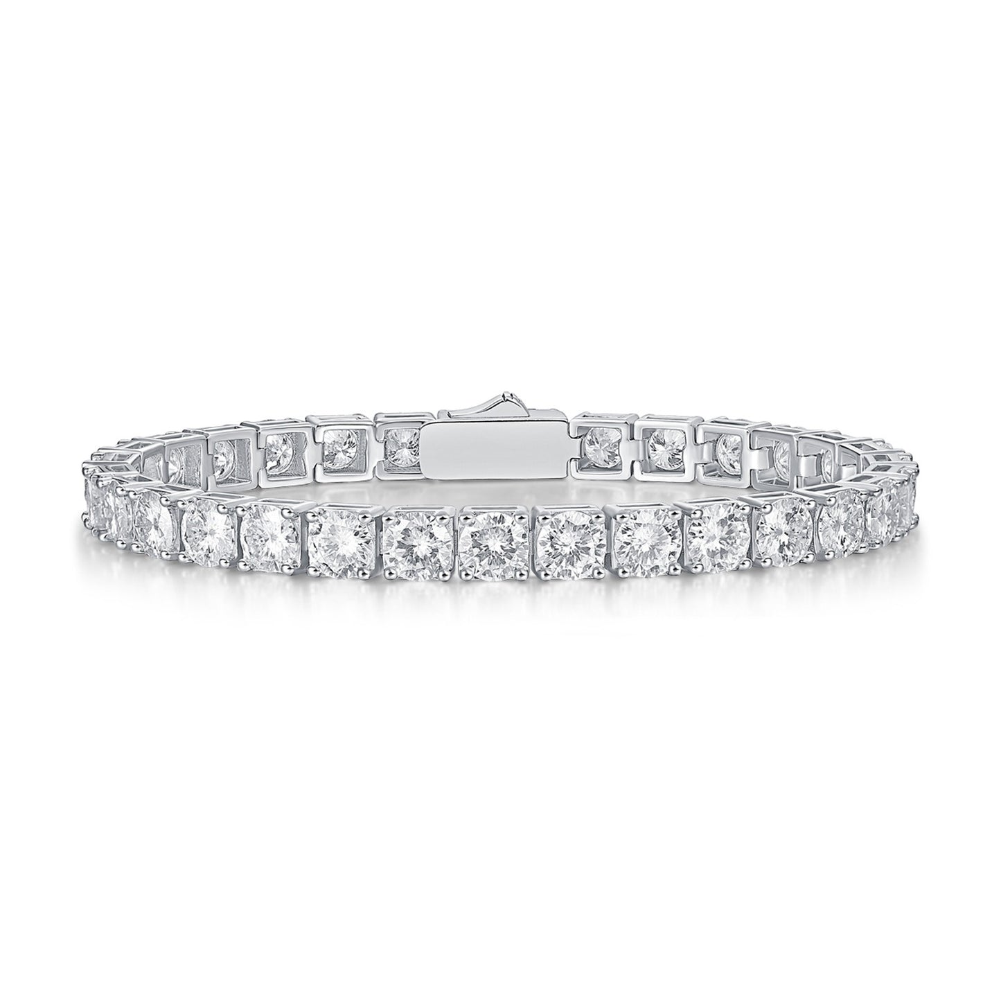 Elevate your wrist game with this 925 Sterling Silver Moissanite Tennis Bracelet, designed for the fashion-forward and sparkle lovers. Each bracelet is hand-set with high-grade moissanite stones, offering diamond-level brilliance in five size variations: