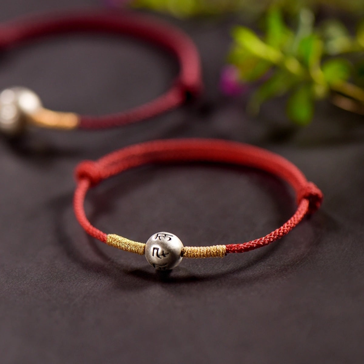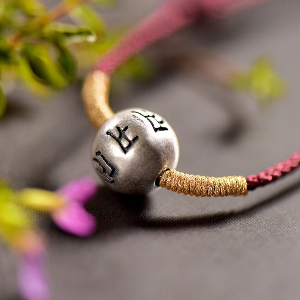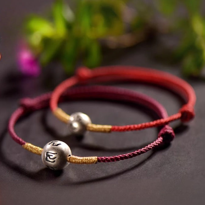 Zen Healing 925 Sterling Silver Om Mani Padme Hum Luck Bead Red String Bracelet