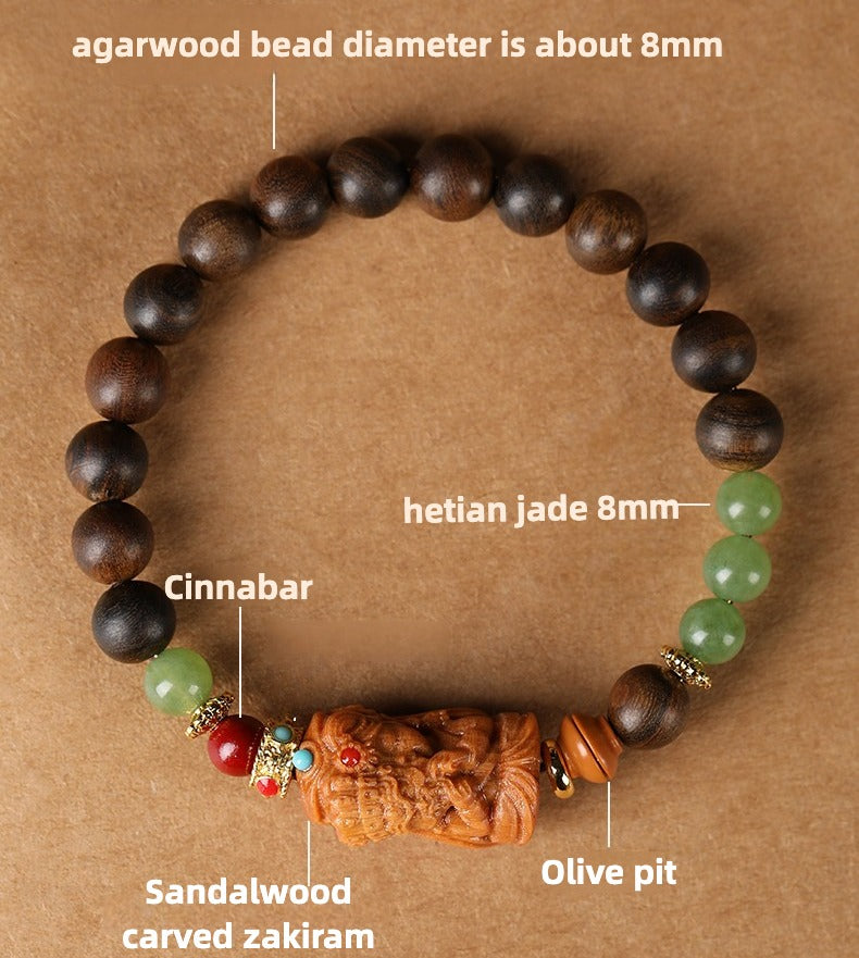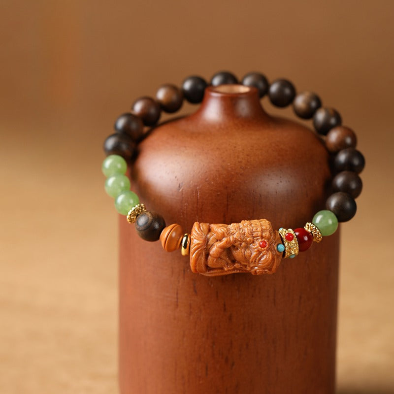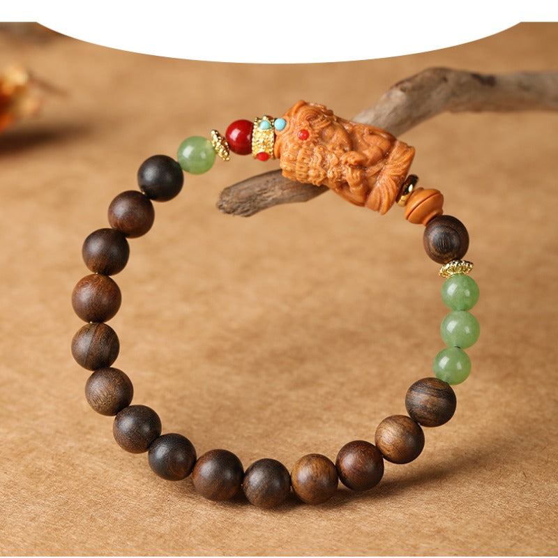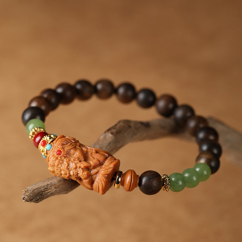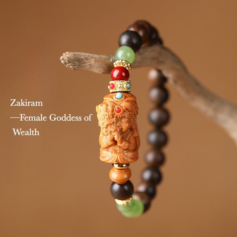 Zen Healing Agarwood Tibetan Carved Zakiram Goddess of Wealth Bracelet