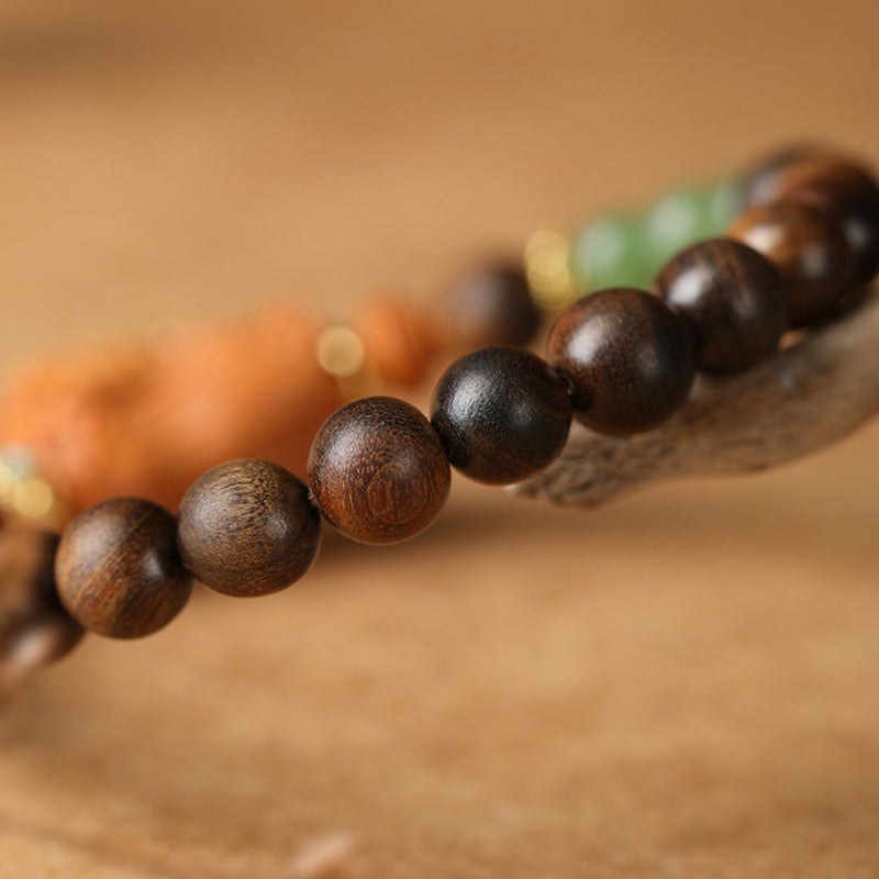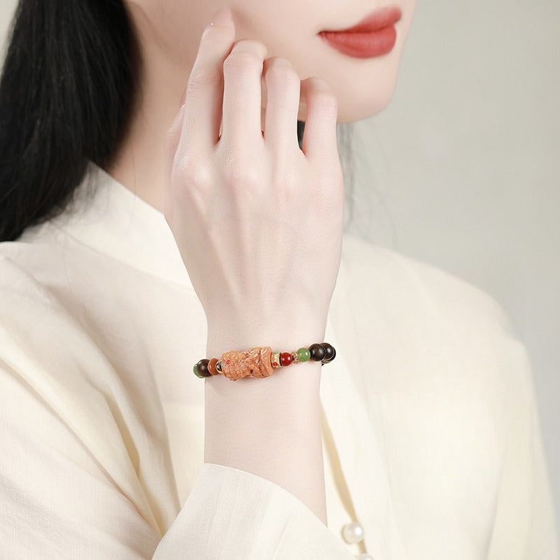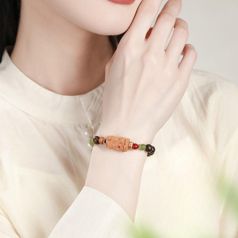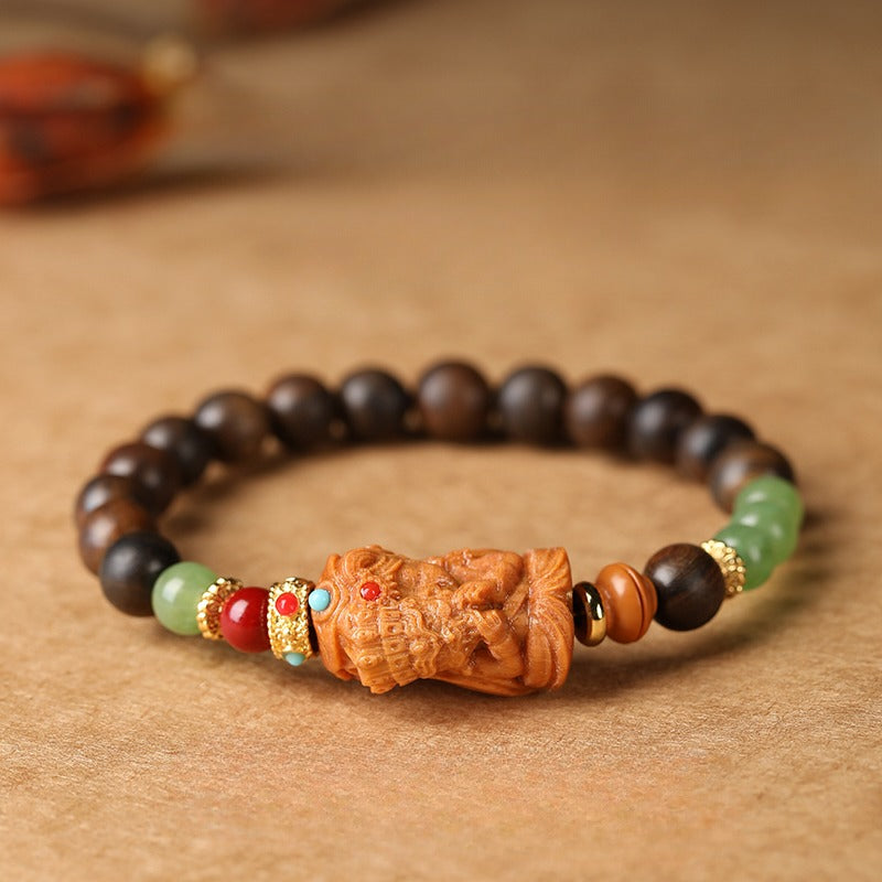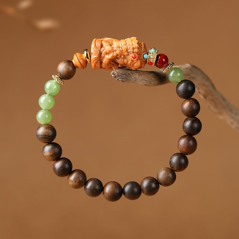 Zen Healing Agarwood Tibetan Carved Zakiram Goddess of Wealth Bracelet