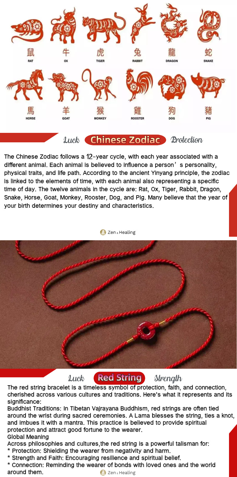 Zen Healing Chinese Zodiac Wealth Red String Bracelet
