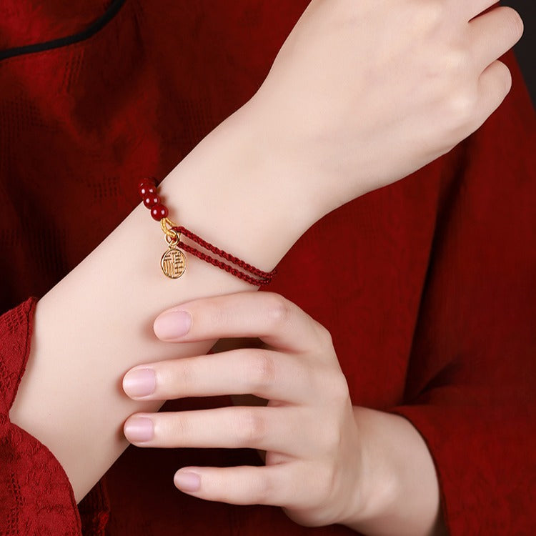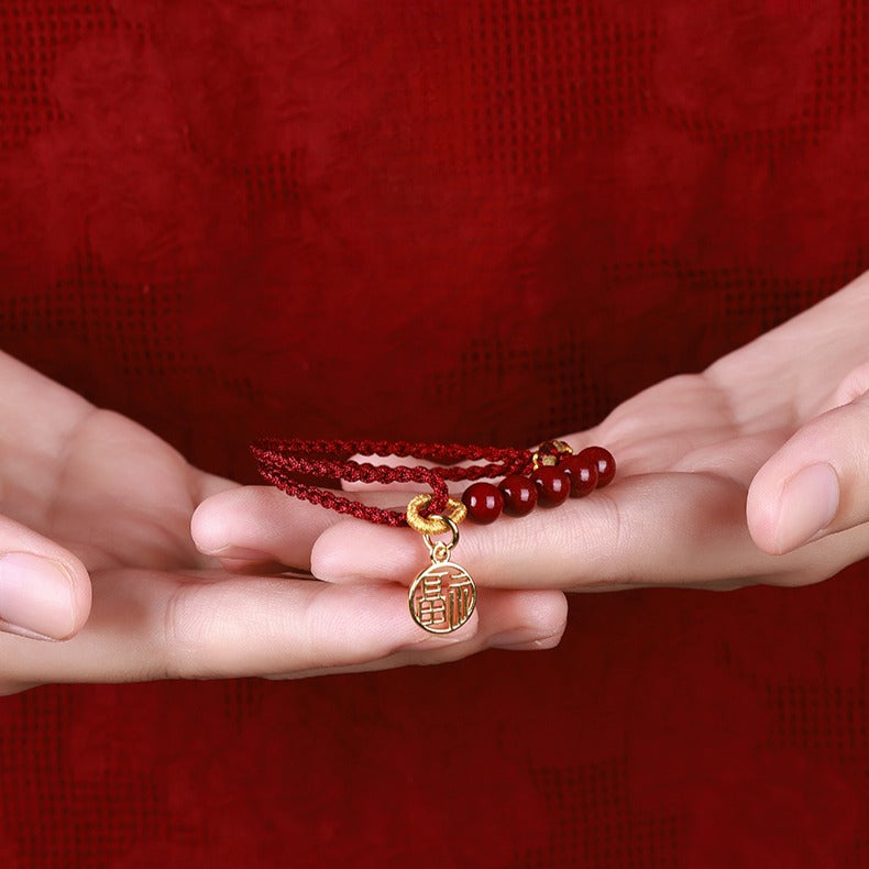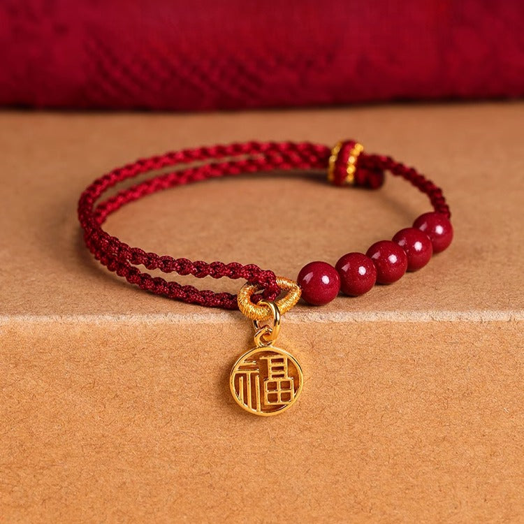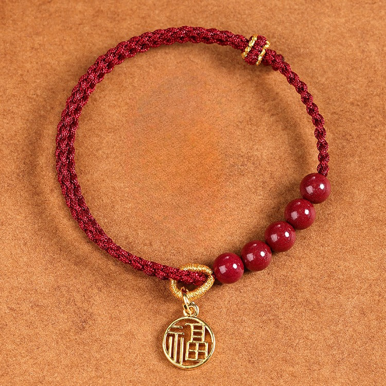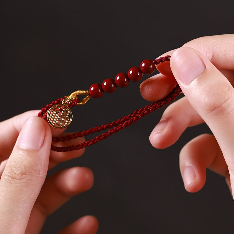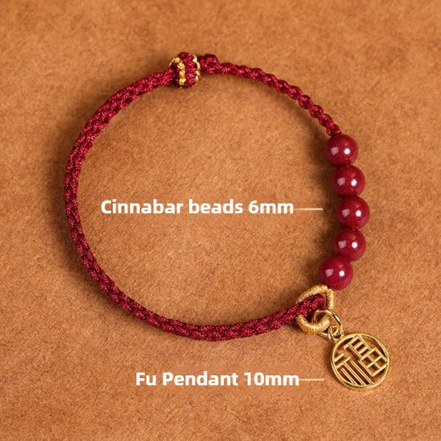 Zen Healing Cinnabar Fu Pendant Red String Harmony Bracelet