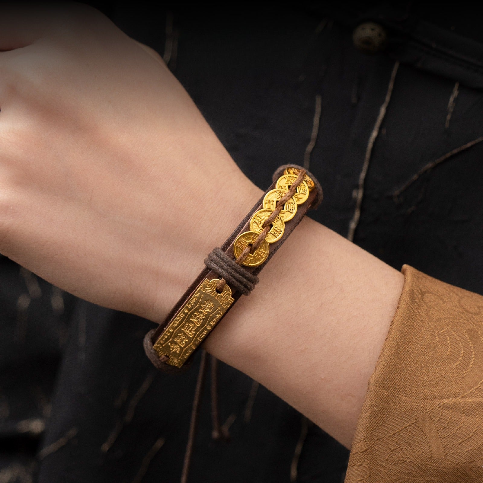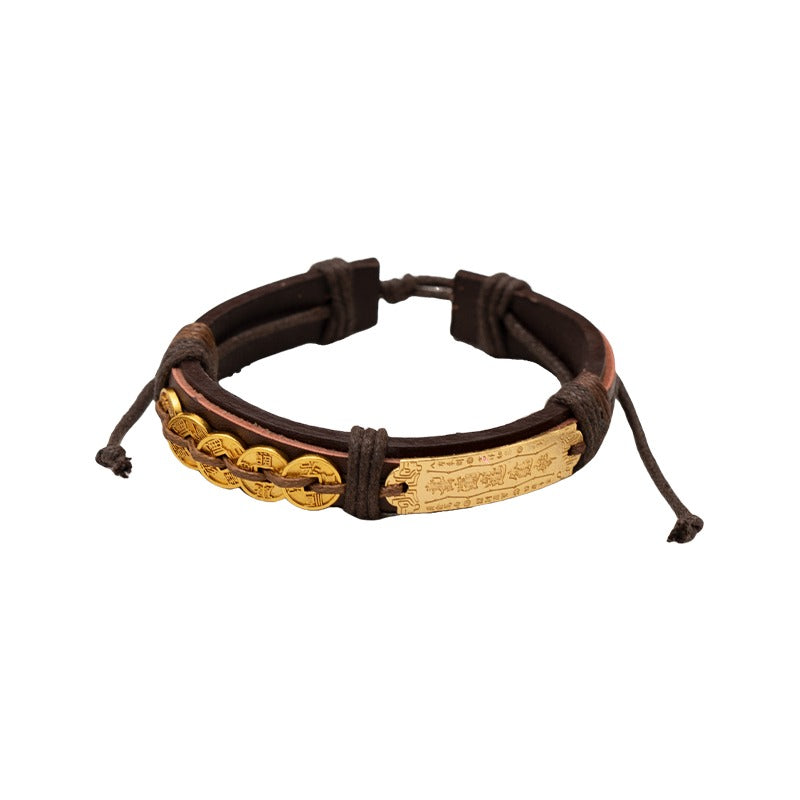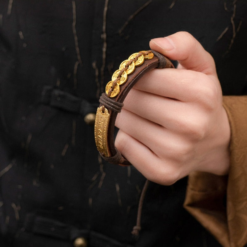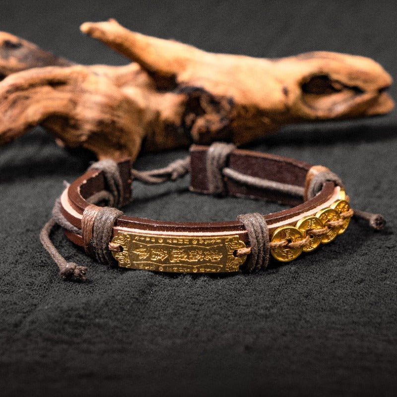 Zen Healing Copper Coin Luck Charm Leather Adjustable Bracelet