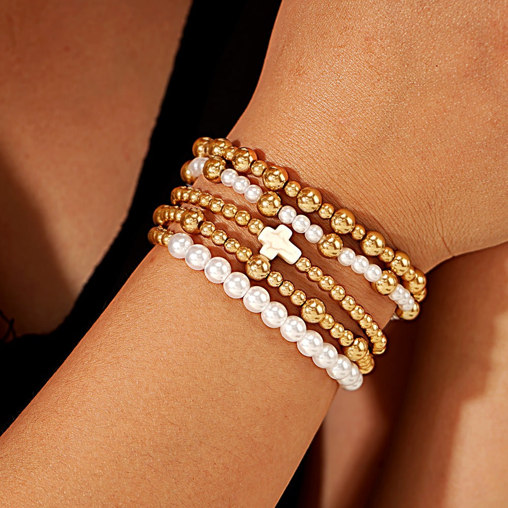 Material: Glass beads combined with a cross charm for spiritual symbolism.