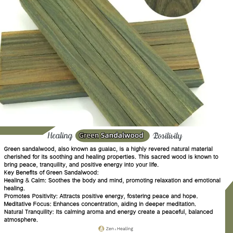 • Aroma: Green sandalwood releases a calming natural fragrance over time