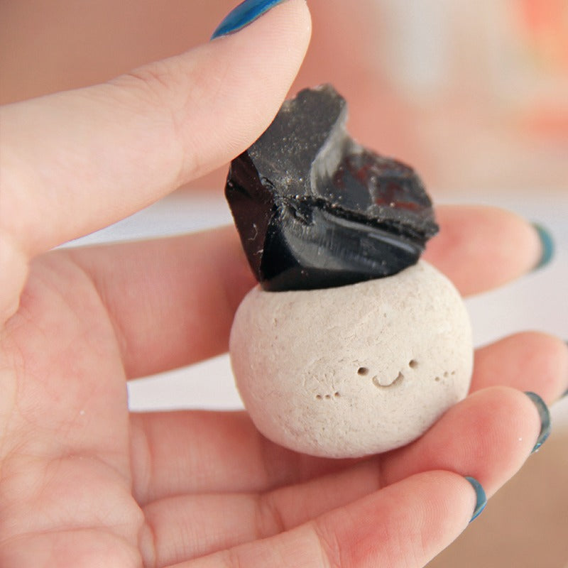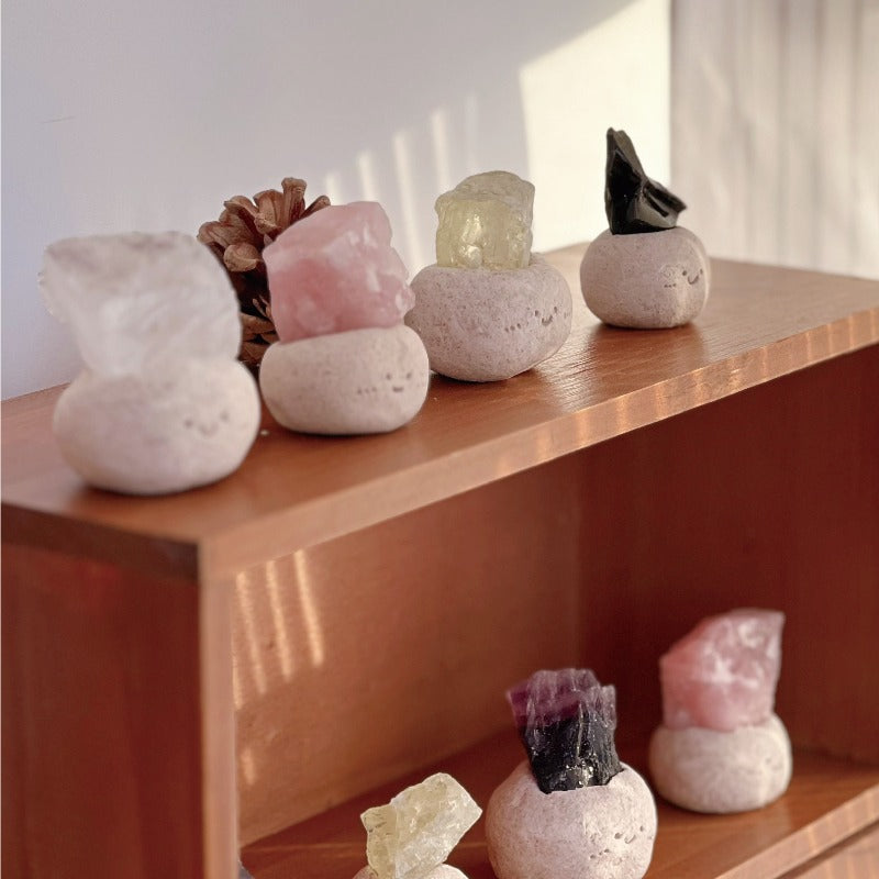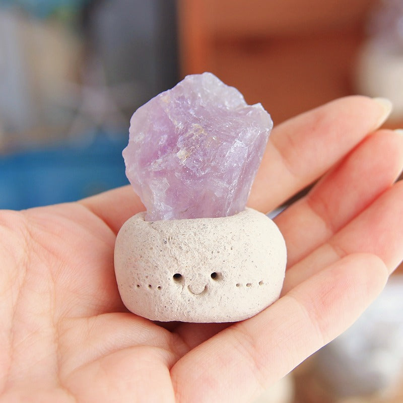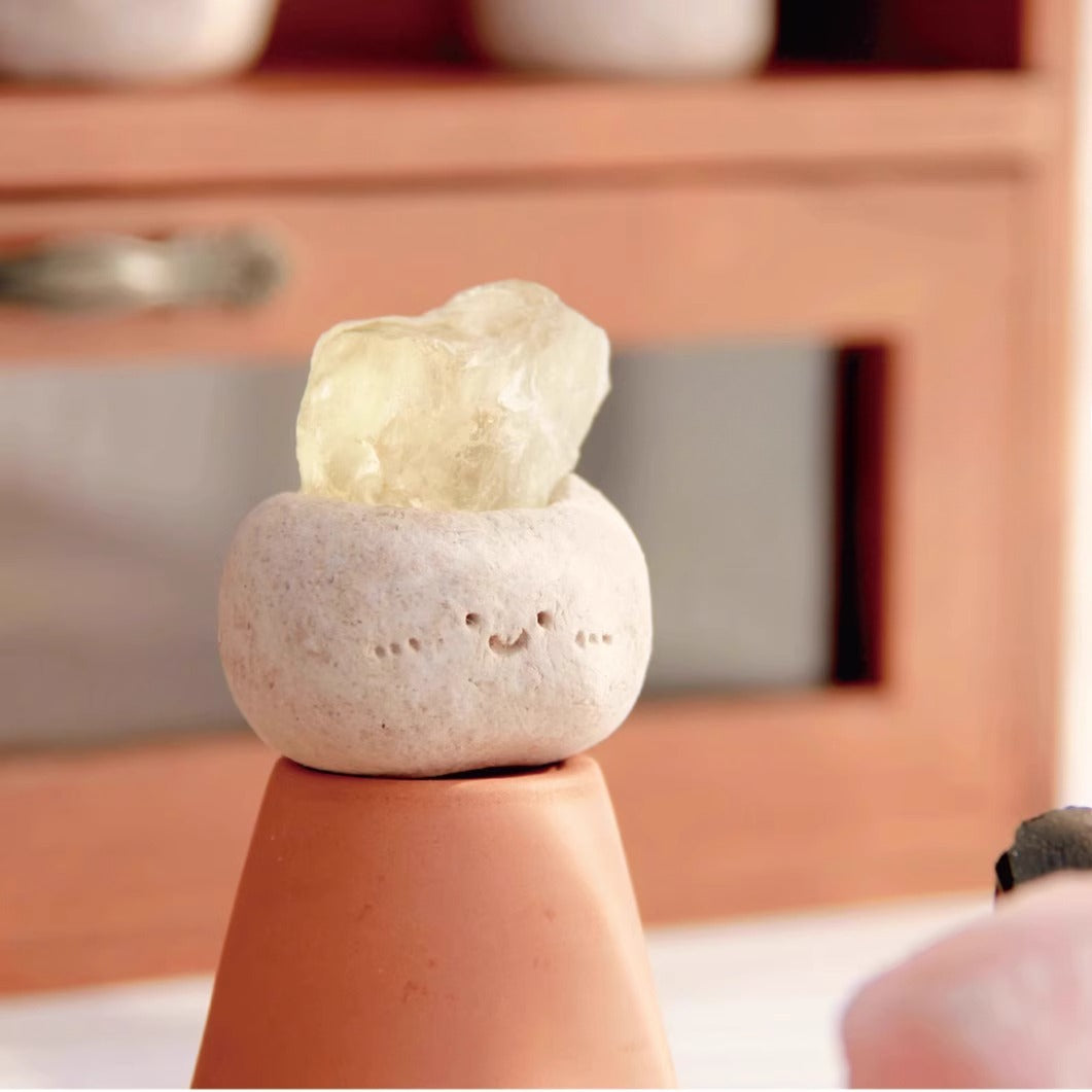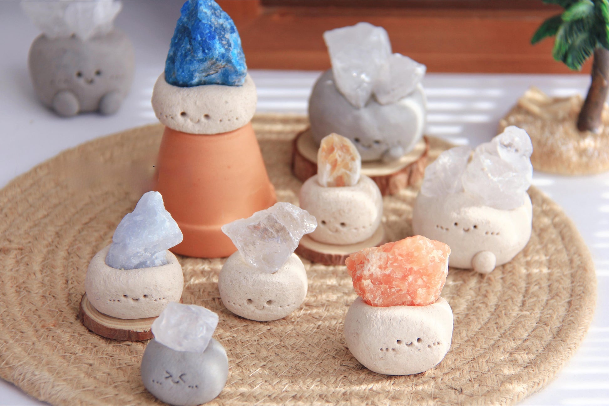Materials: Hand-sculpted clay base + Genuine natural crystal
