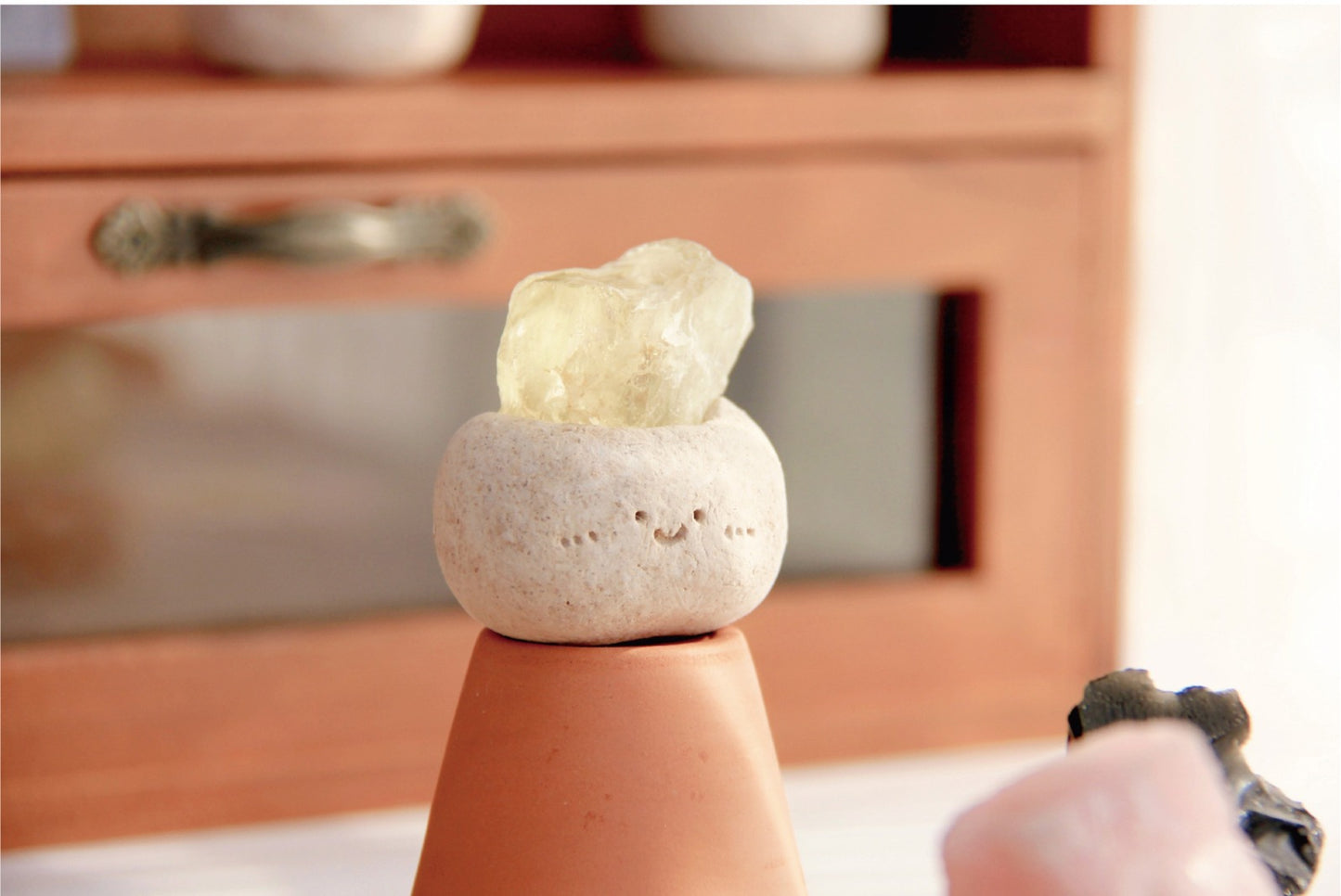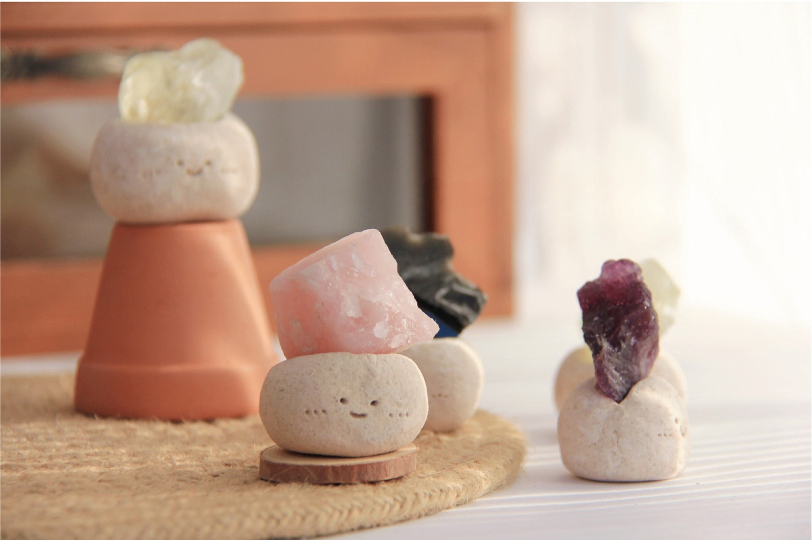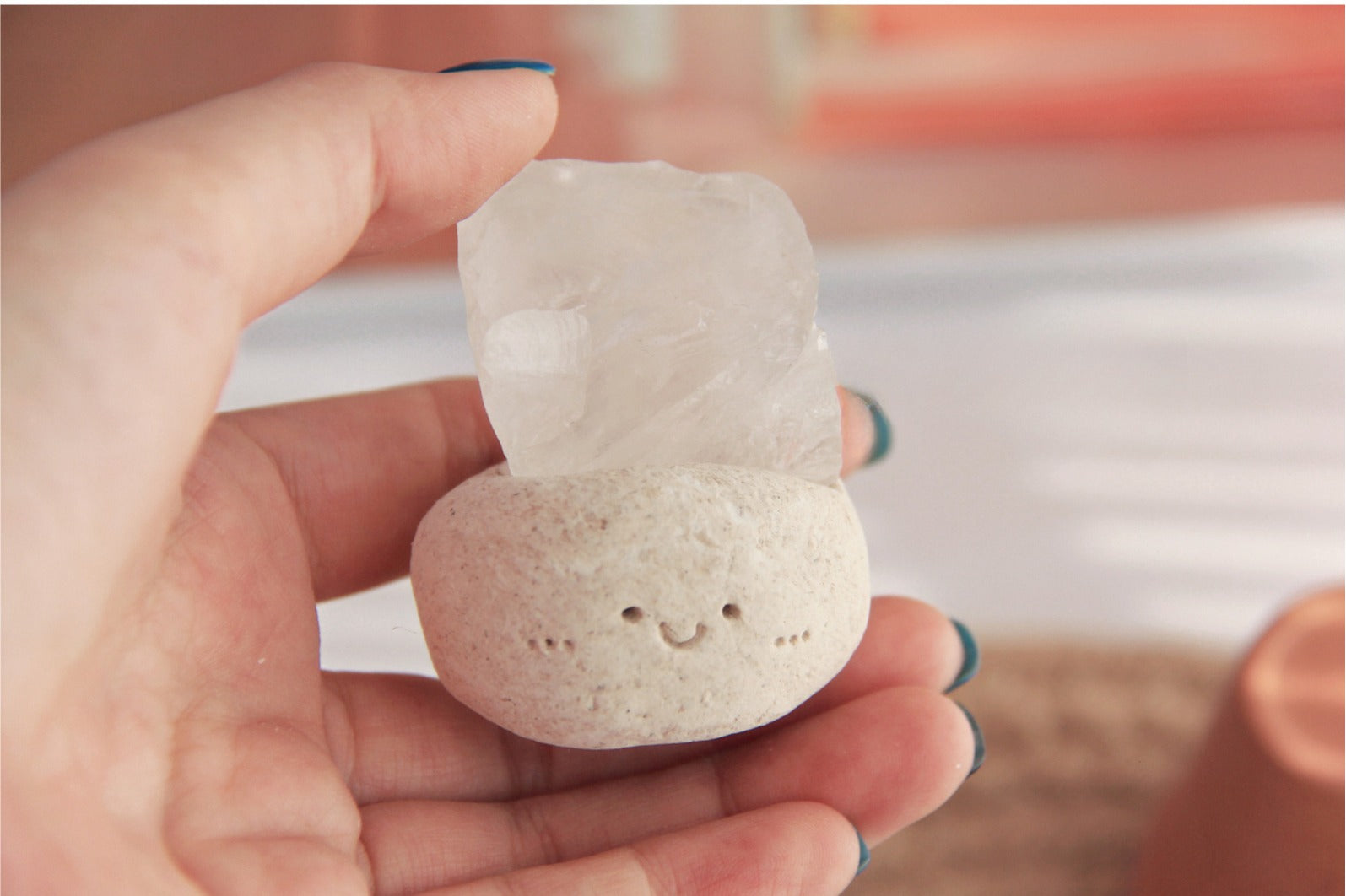 Materials: Hand-sculpted clay base + Genuine natural crystal