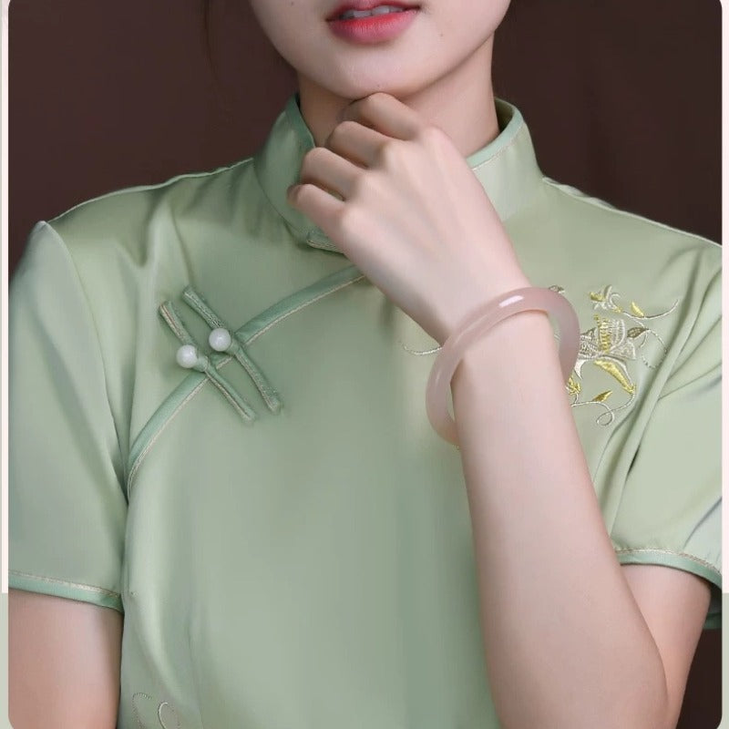 Symbolism: Jade is traditionally associated with luck, fortune, and emotional healing, while the lotus pink color promotes love and peace.