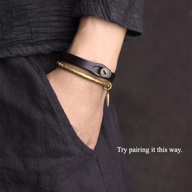 The Zen Healing Leather Brass Luck Bracelet is a blend of rugged elegance and spiritual symbolism. Crafted from high-quality leather and accented with brass, this bracelet is designed to bring good fortune, strength, and protection to the wearer. Its minimalist yet bold design makes it a versatile piece for any occasion.