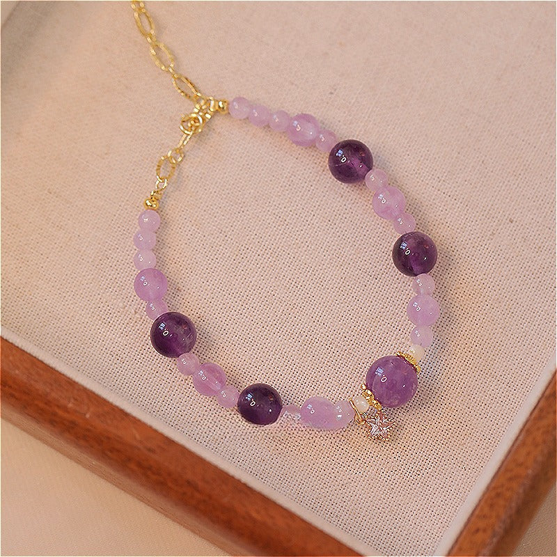 Zen Healing Natural 14k Gold Amethyst Crystal Positive Bracelet