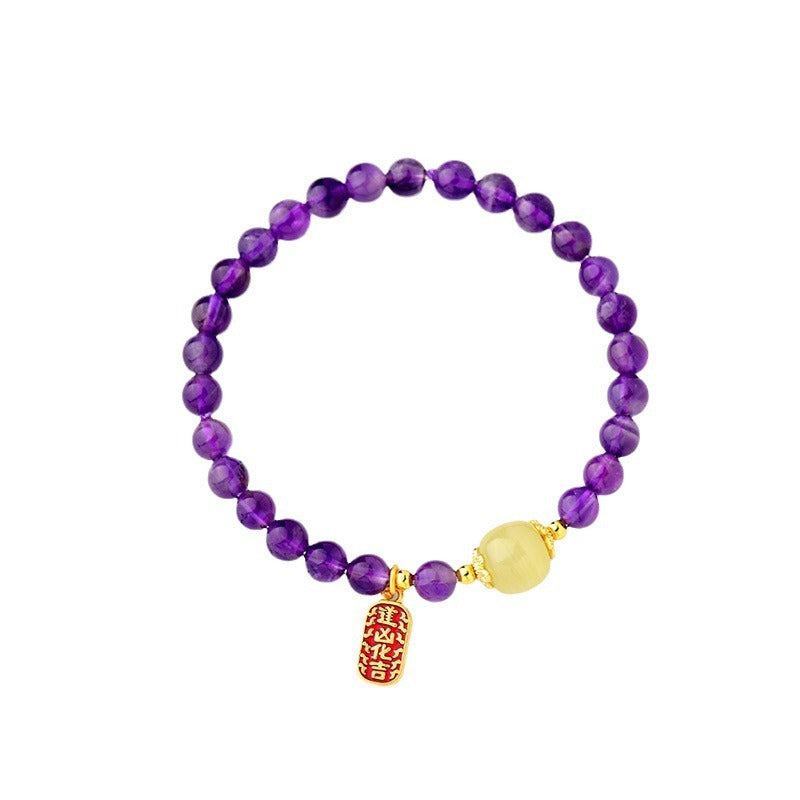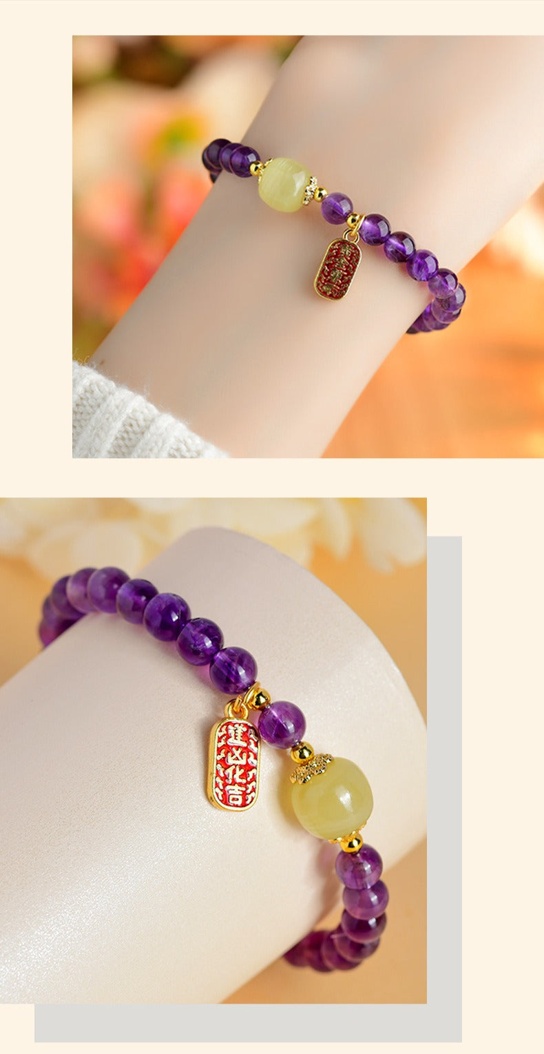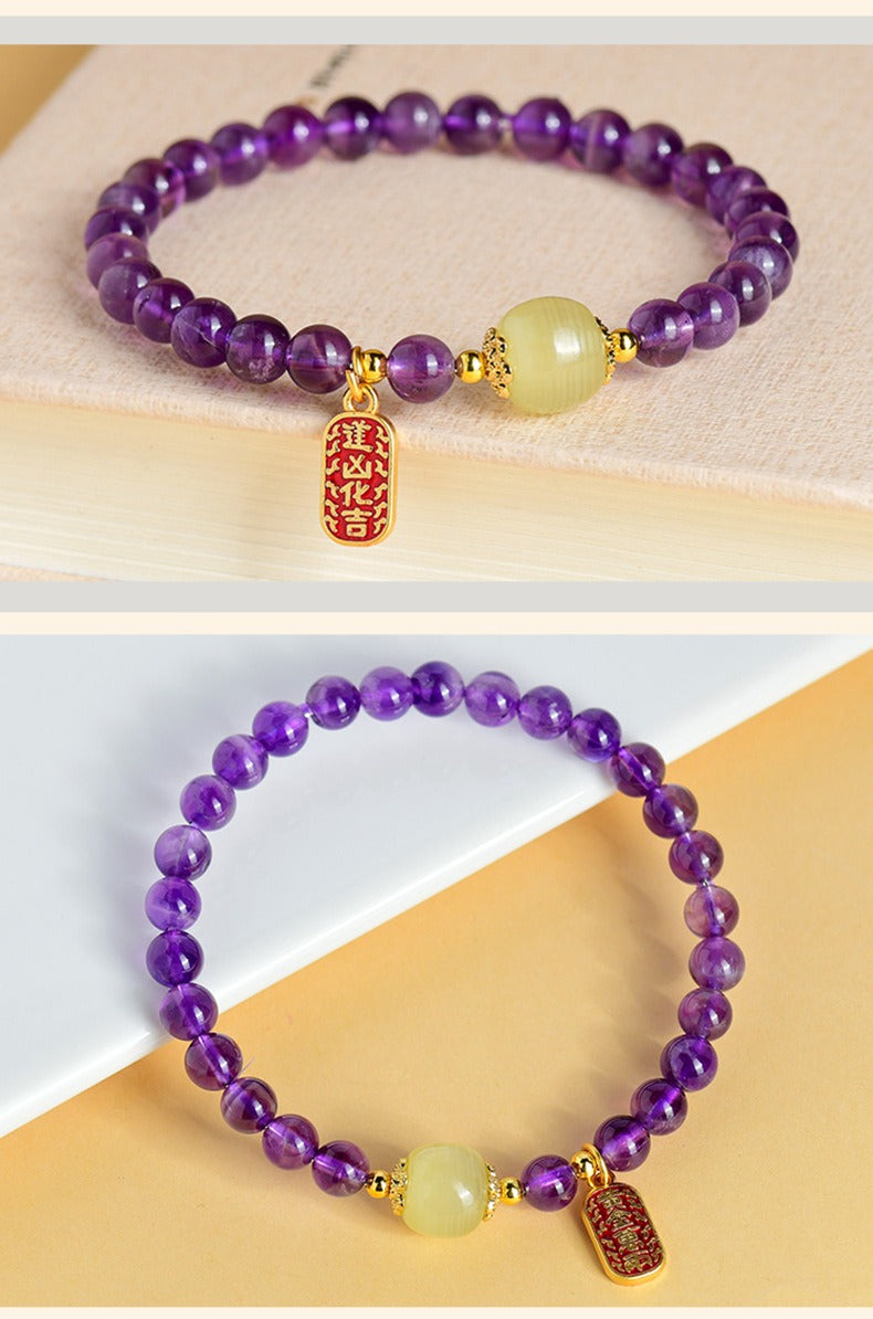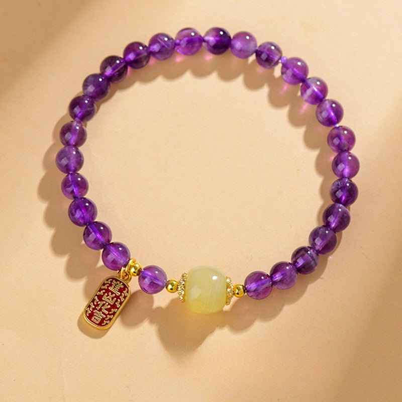 Zen Healing Natural Amethyst Crystal Amulet Charm Positive Bracelet