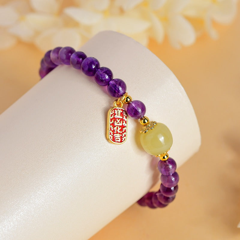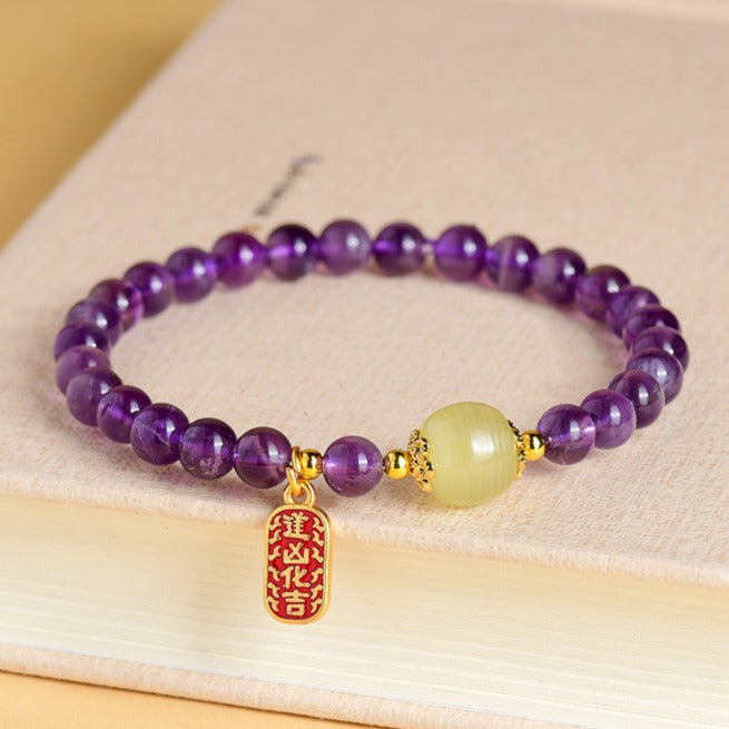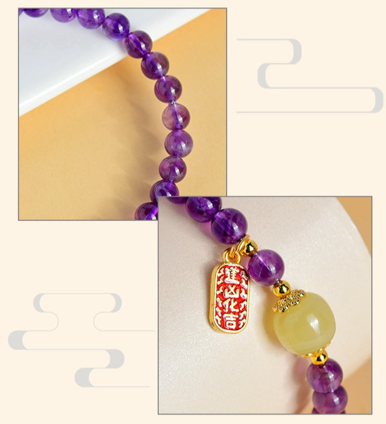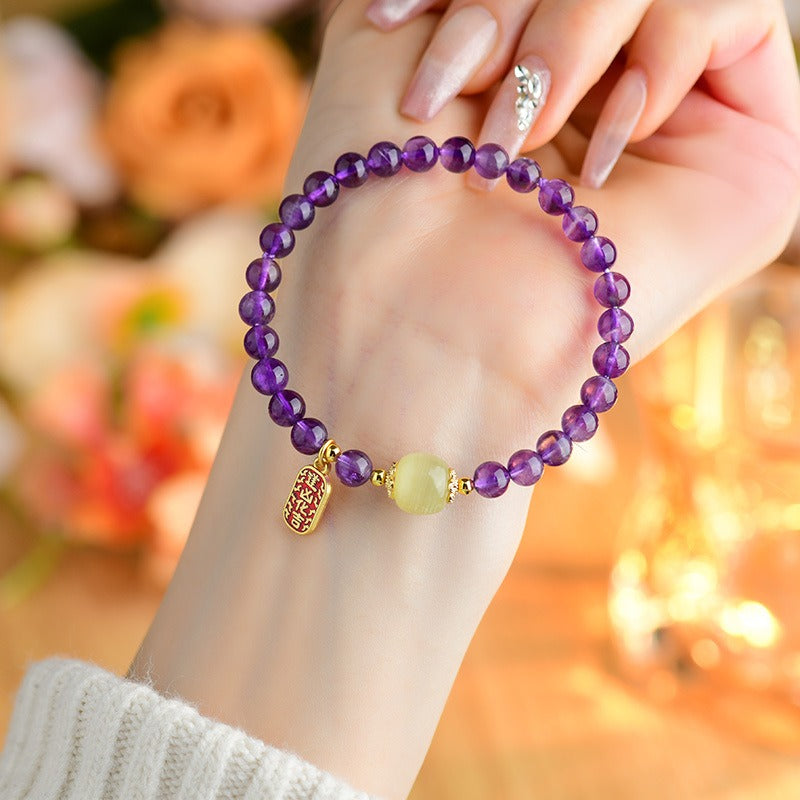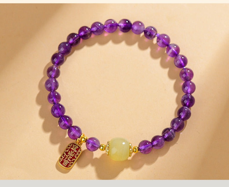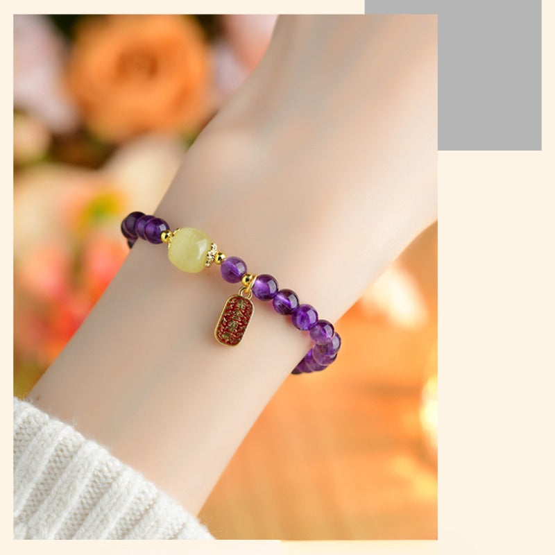 Zen Healing Natural Amethyst Crystal Amulet Charm Positive Bracelet