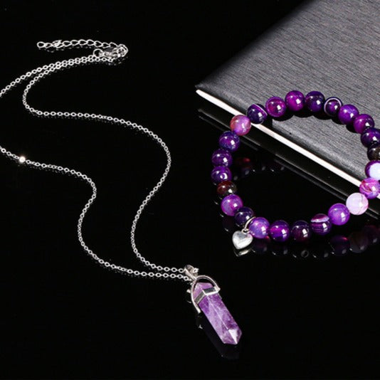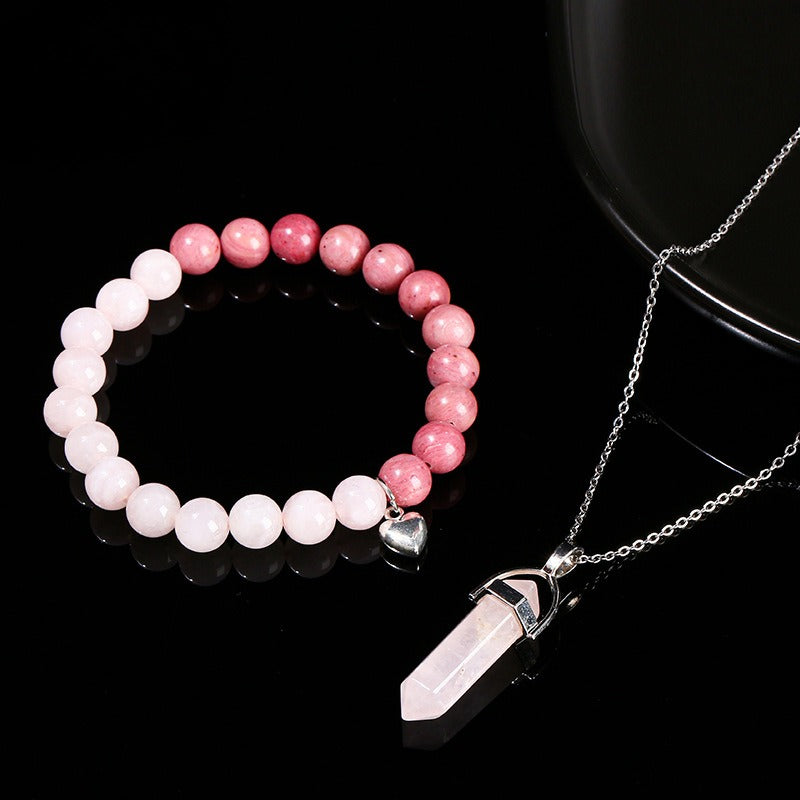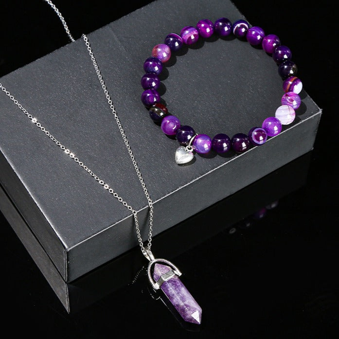 Zen Healing Natural Crystal Agate Heart Charm Bracelet & Necklace Set