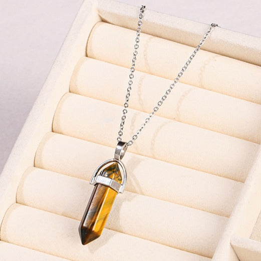 🔹 8x30mm hexagonal crystal pendant necklace (45+5cm adjustable chain)