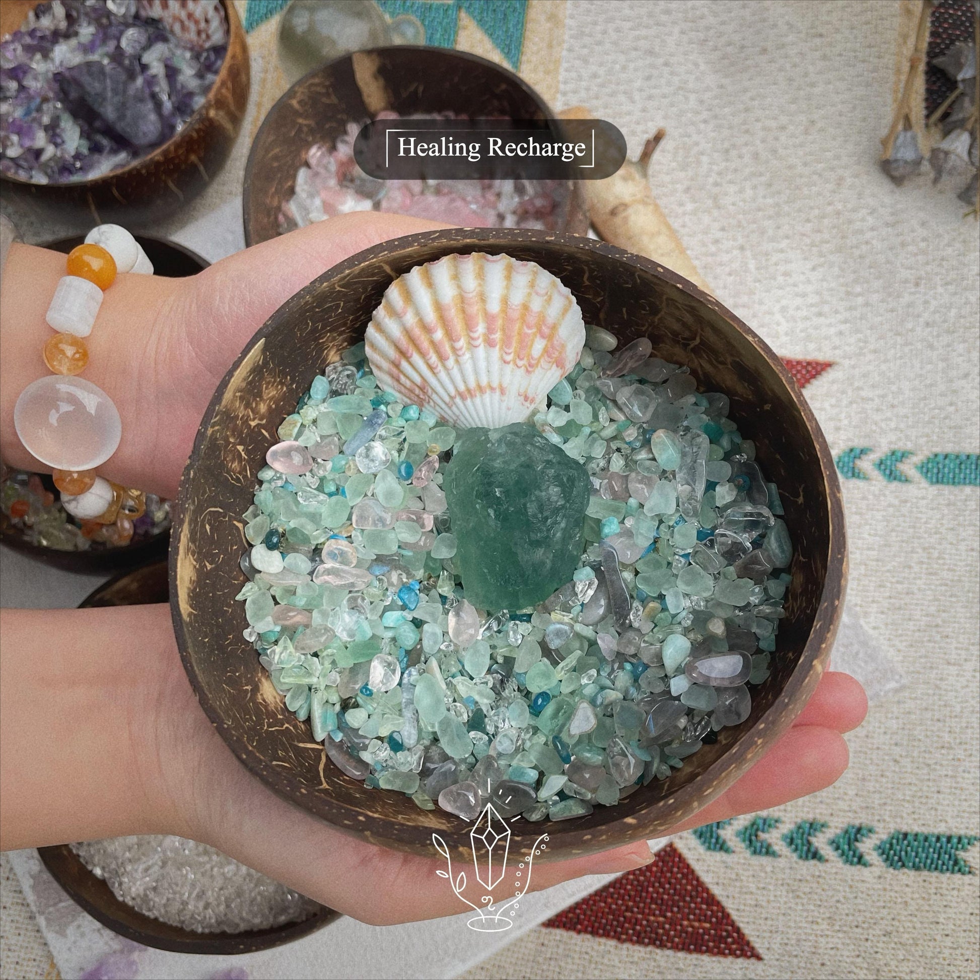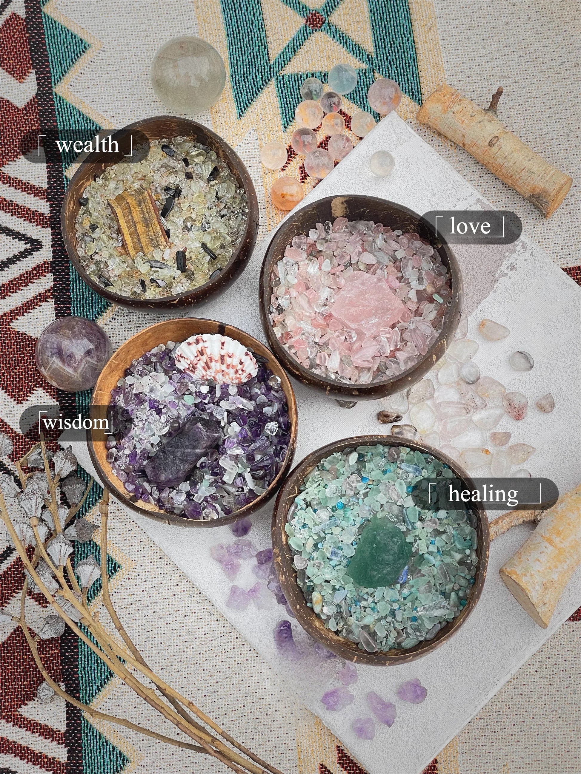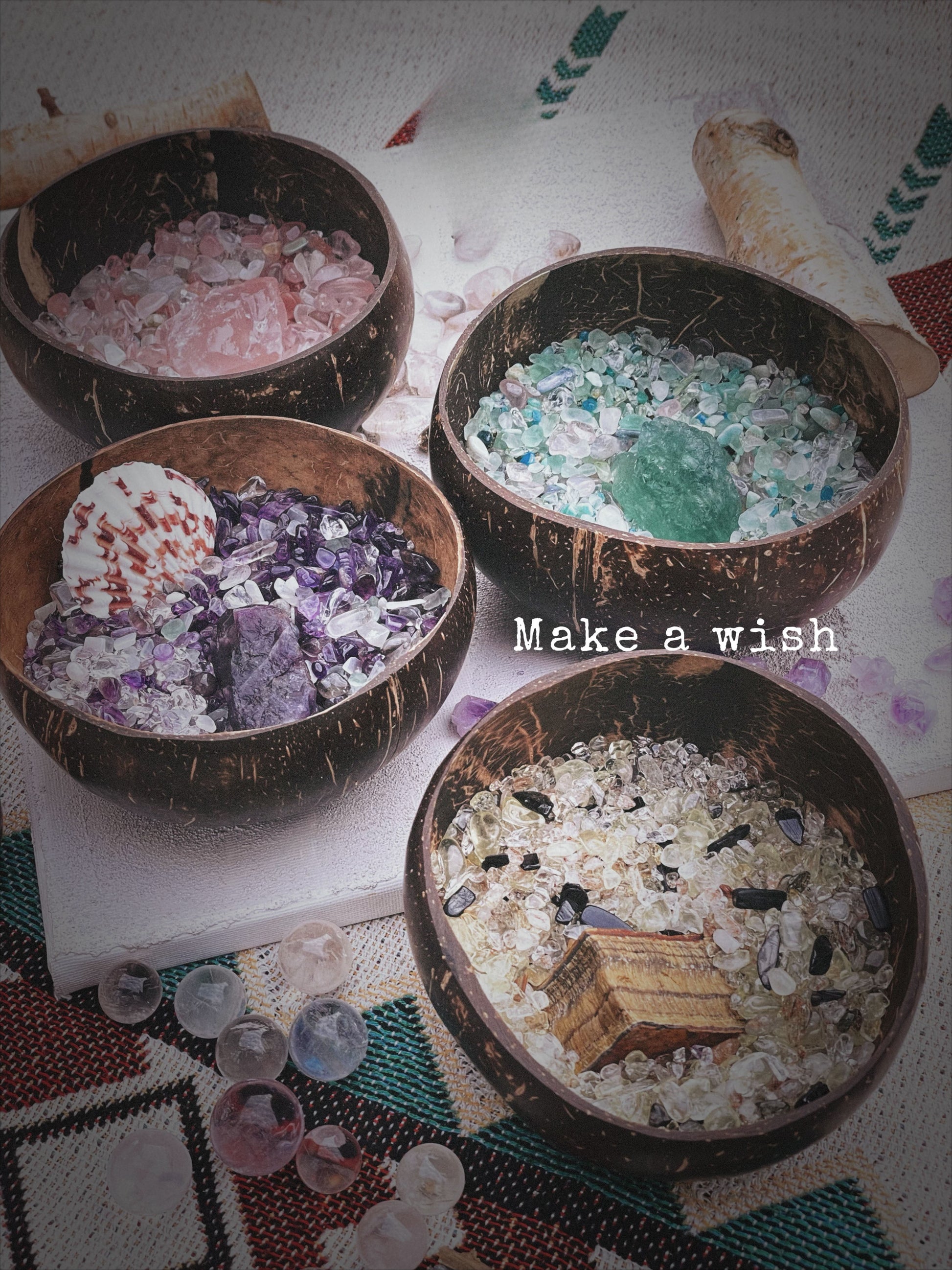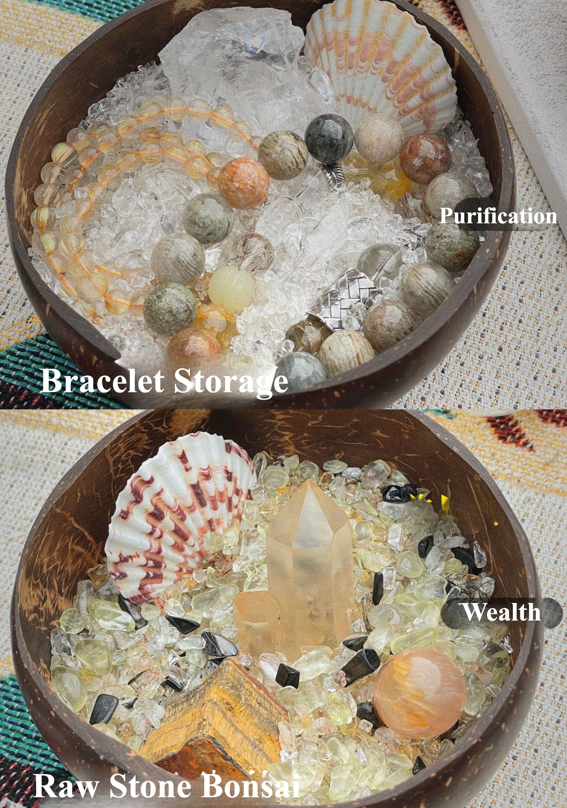 Zen Healing Natural Crystal Coconut Bowl Wishing Tabletop Planter