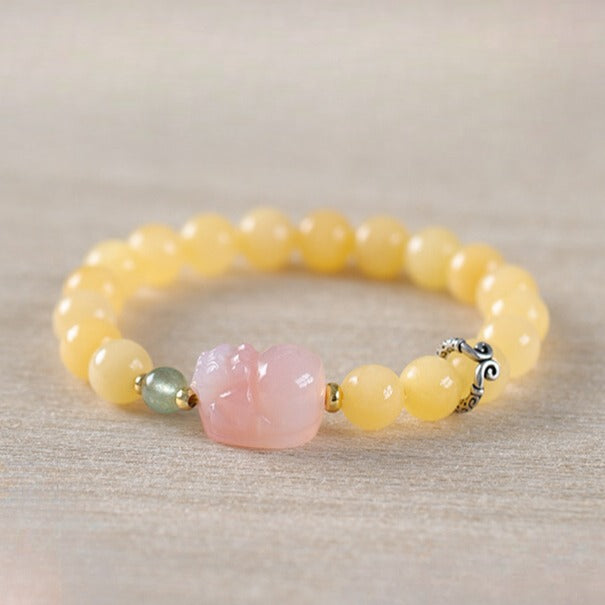 Zen Healing Natural Yellow Jade Agate Pixiu Wealth Bracelet