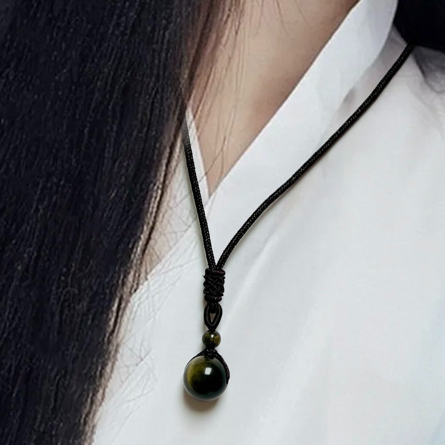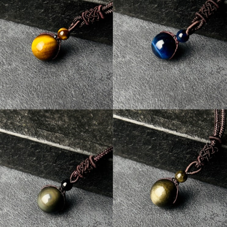 Zen Healing Obsidian Tiger’s Eye Fortune Bead Luck Necklace Pendant