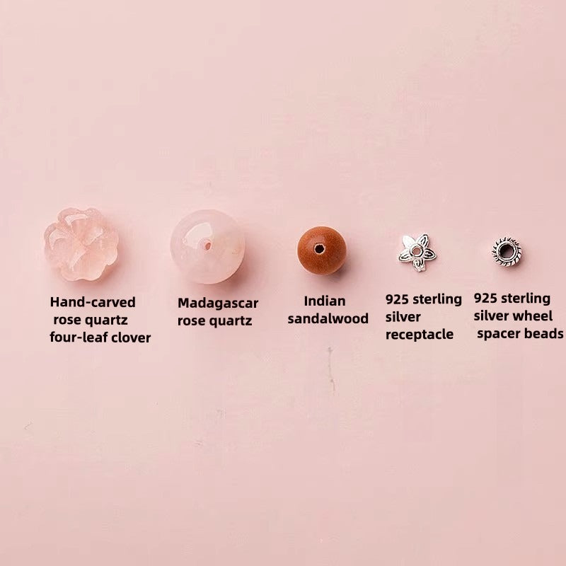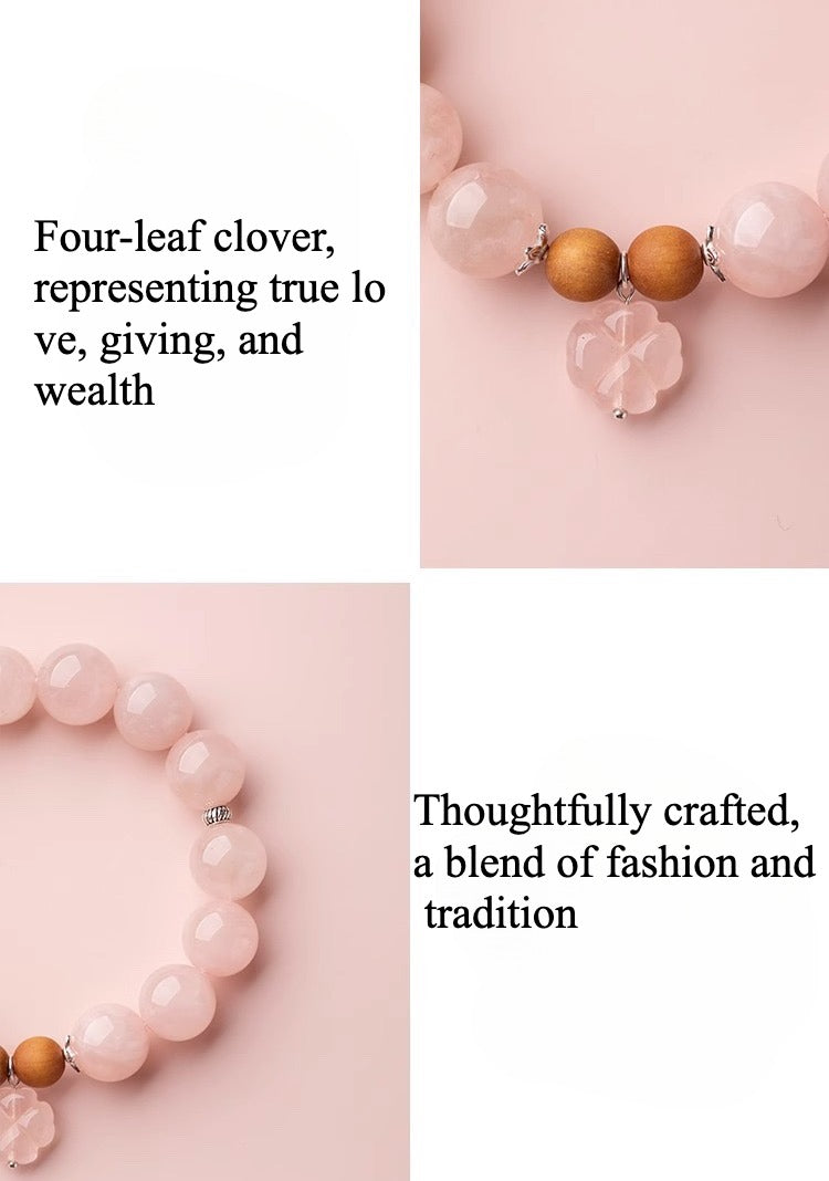 • Color: Soft pink hues of rose quartz, paired with the elegant green charm of the four-leaf clover