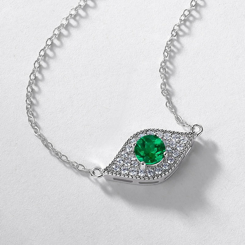 Zen Healing S925 Silver Lab-Created Emerald Devil's Eye Necklace