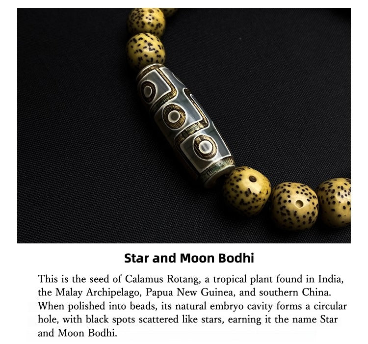 Zen Healing Star and Moon Bodhi Nine-Eyed Dzi Bead Success Bracelet