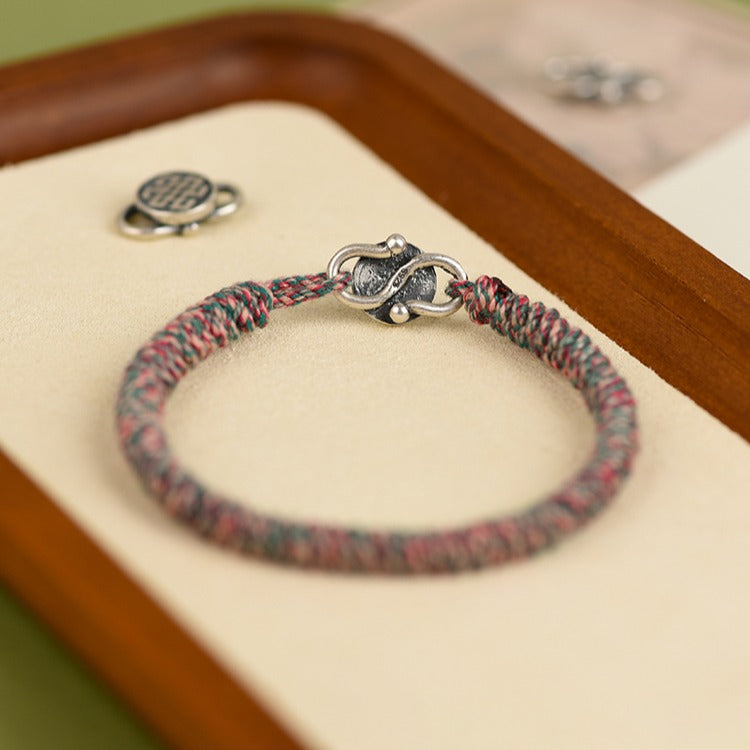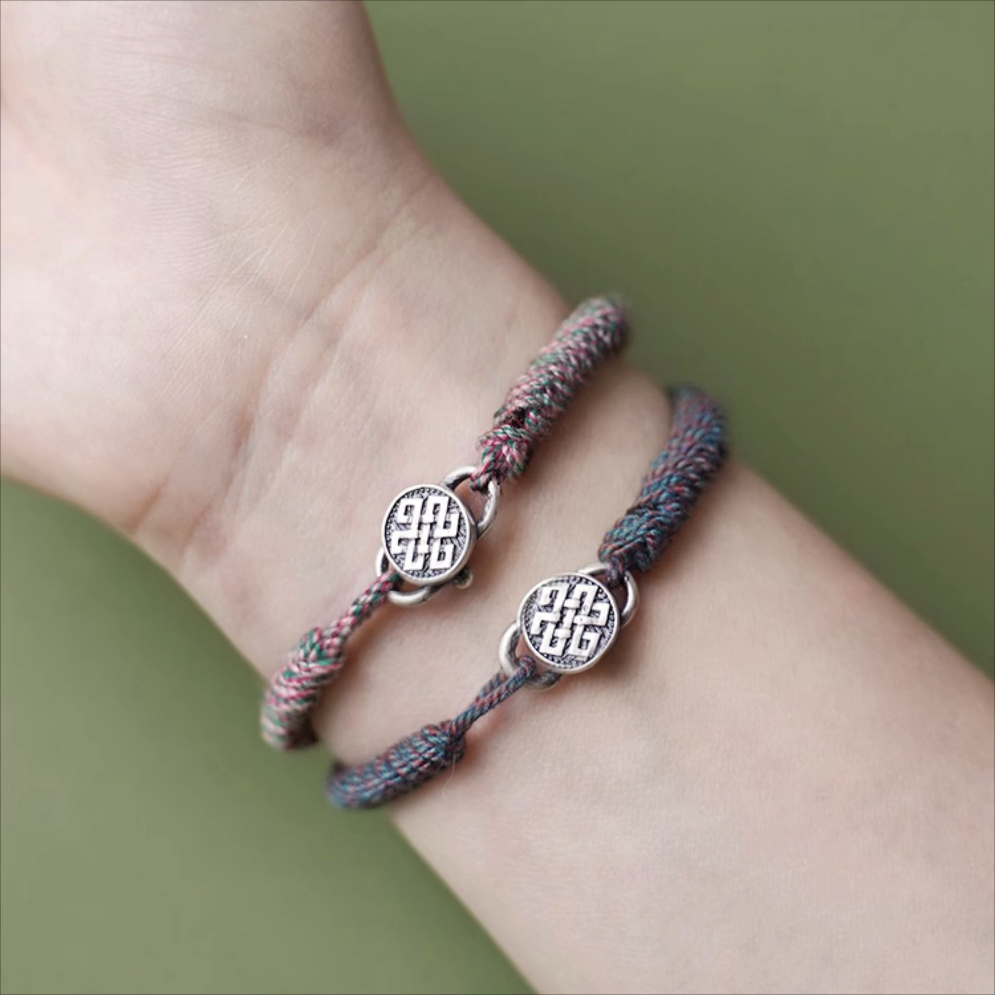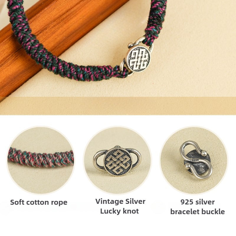 Zen Healing Tibetan 925 Sterling Silver Lucky Knot Braided Bracelet
