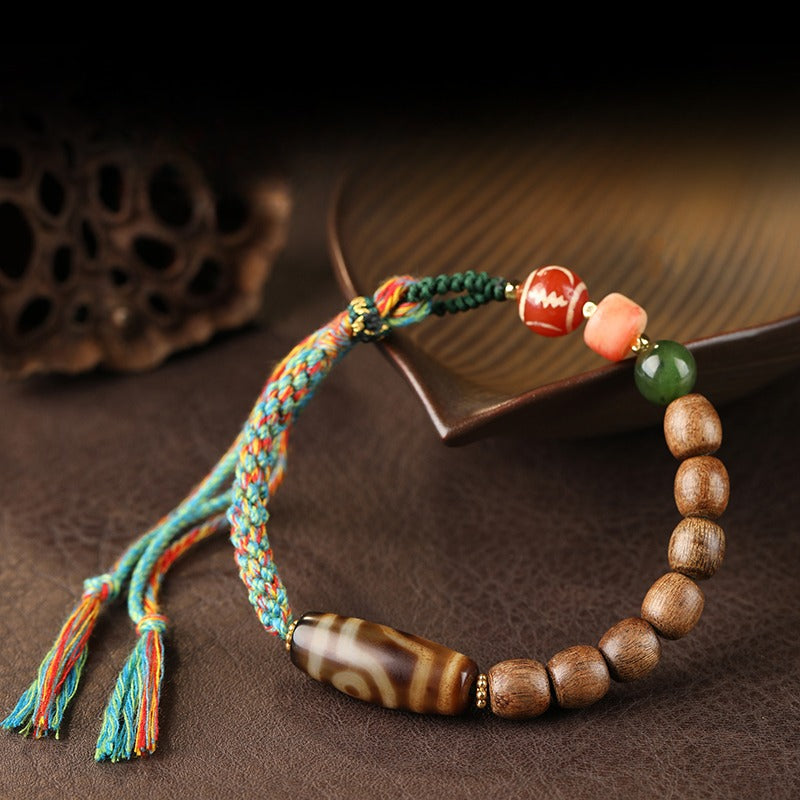Zen Healing Tibetan Agarwood Agate Dzi Bead Protection Braided Bracelet